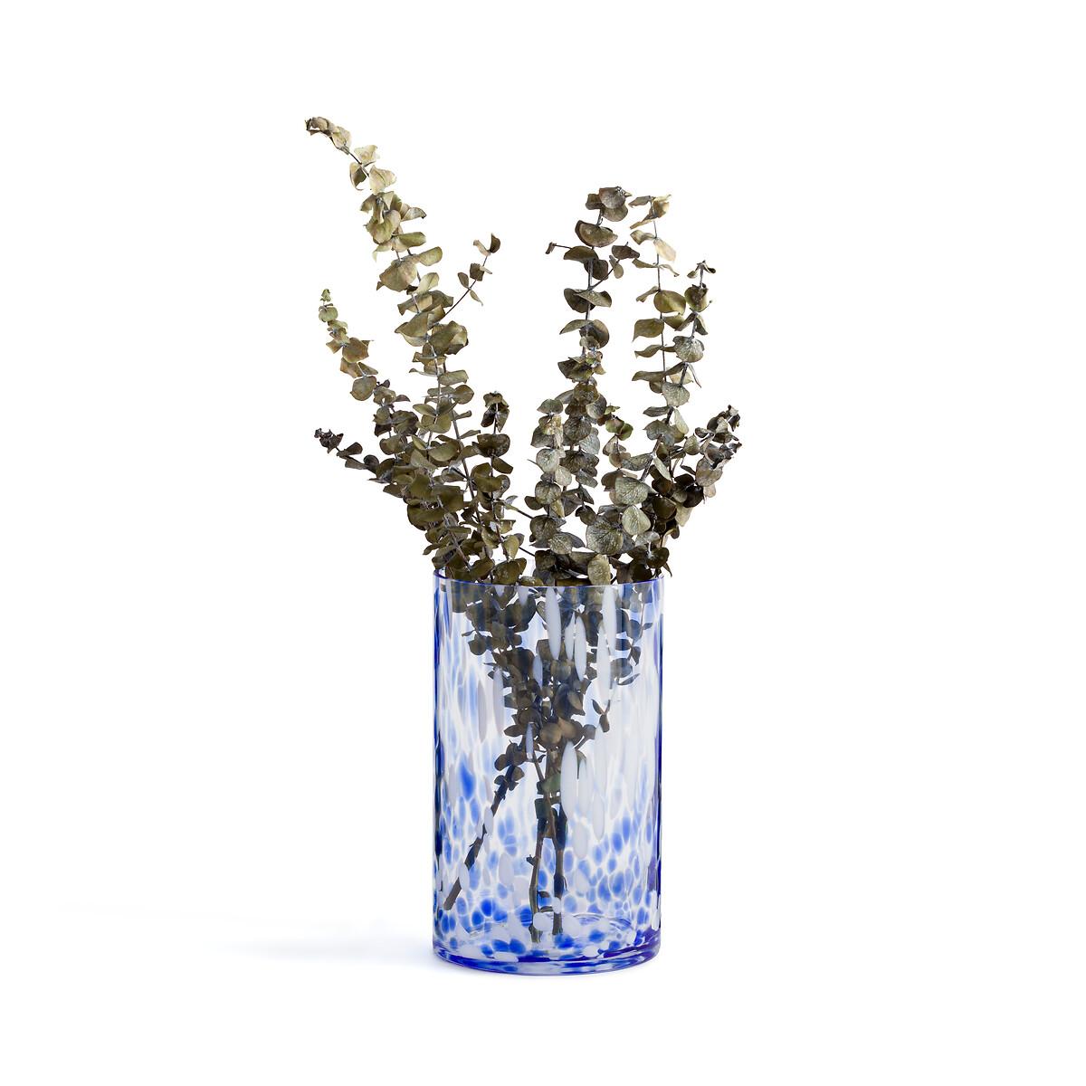 Bright and refined. With its touches of blue and white, the Giori vase creates a unique atmosphere in the living room. Ideal as a decorative object or to place a pretty bouquet of flowers. Product Details • In mottled effect glass. Dimensions • Diameter: 15cm • Height: 25cm