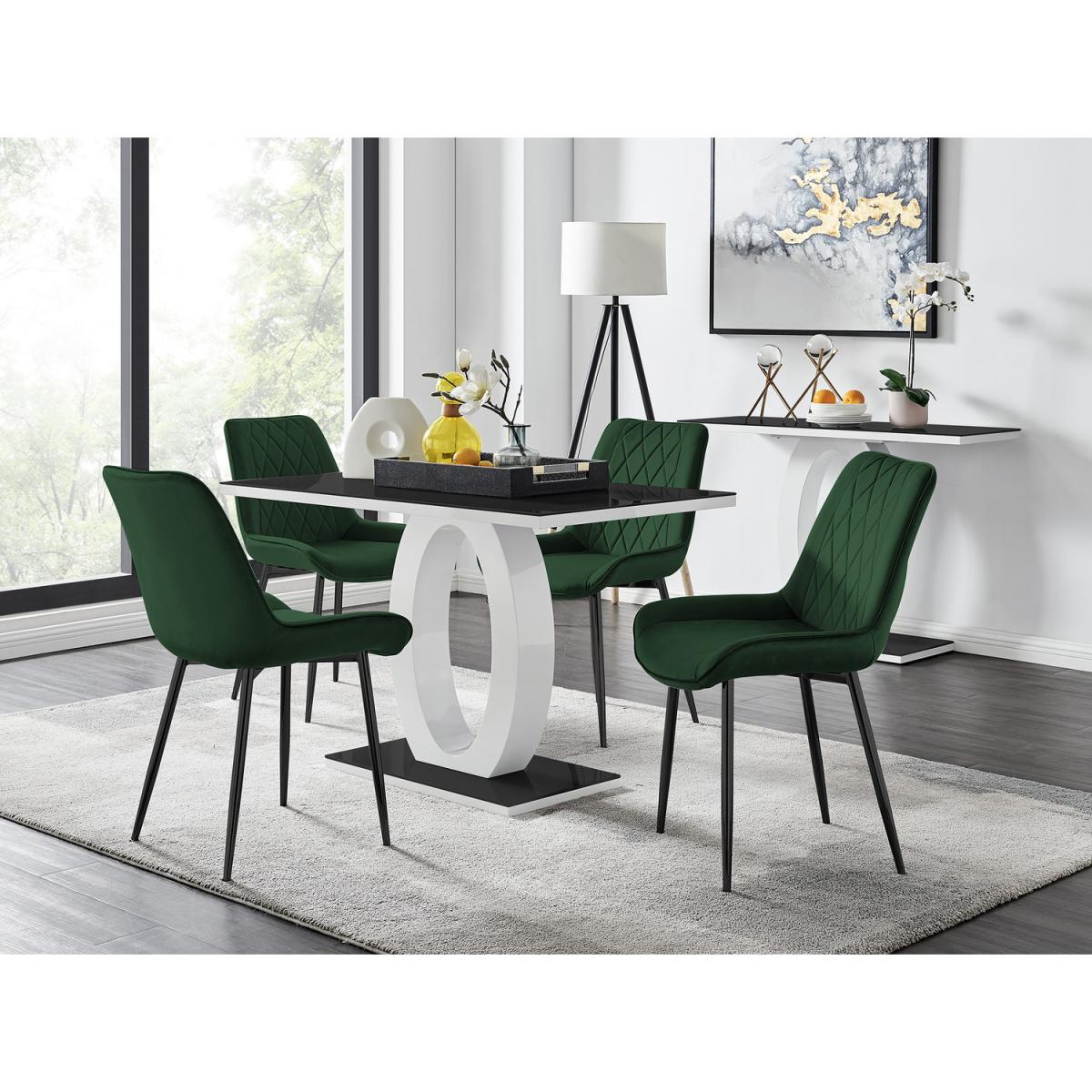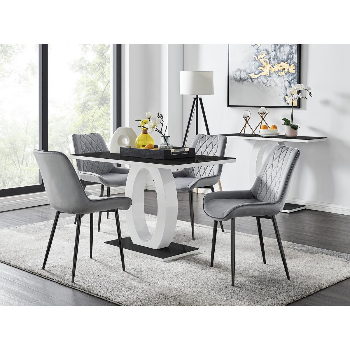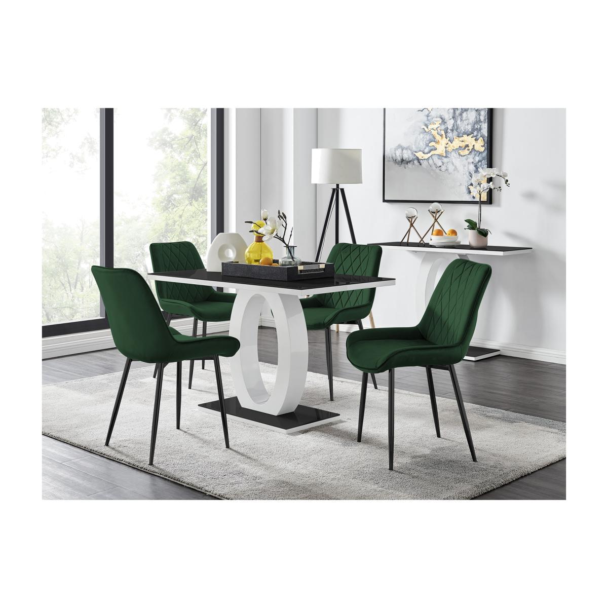 The Giovani table is arguably the most striking and artistic in our collection of bespoke high gloss tables. The beautifully designed Giovani will be the centrepiece of any modern home, combining not just design and function, but also affordability! The two-tone effect, along with the crisp clean lines, really does give it that modern wow factor. The Giovani 4 has a 120x70cm table top made from black tempered glass, is easy to maintain and offers plenty of room for dining with guests! Modernise your dining area with our luxurious velvet upholstered Pesaro Dining Chairs. With a nod to the Mid-century modern design era, the Pesaro features gorgeous textured diamond stitching with an ergonomically designed curved seat pad blending seamlessly with the supporting medium-high backrest. Sat atop elegant slightly tapered legs in black, chrome or gold effect. The Pesaro is a perfect match for any dining table or used as a luxe vanity seat in the bedroom, as an occasional chair for the living area or to add a bit of luxury to your home office.