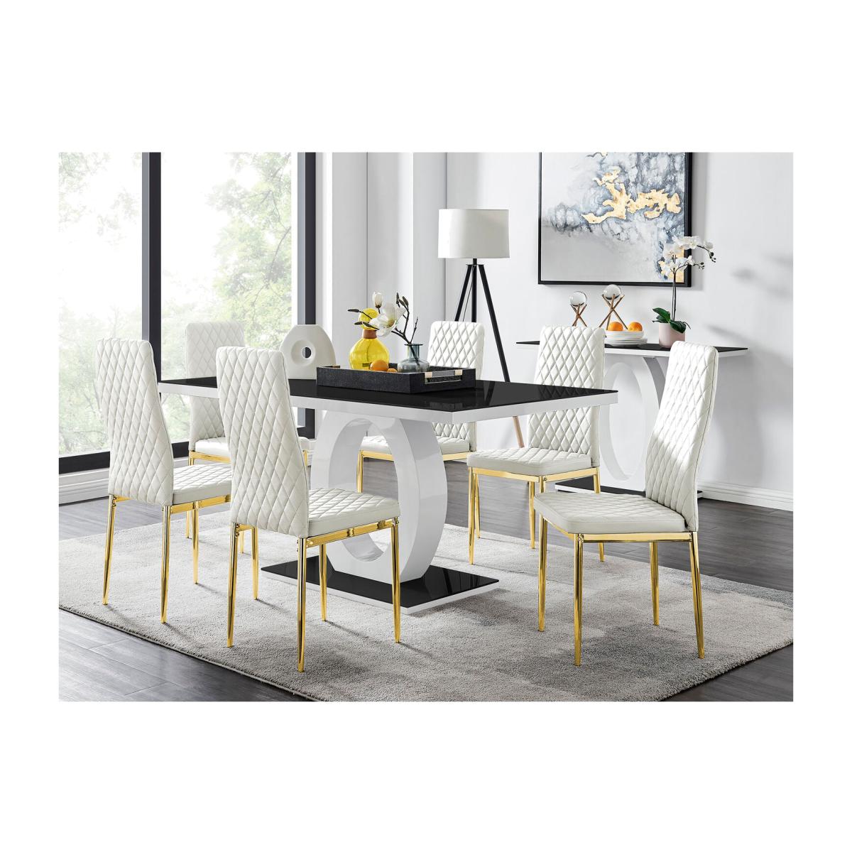 If you want to give your dining room the wow factor, the beautifully designed Giovani table is perfect for you. Its unique design will instantly grab the attention of your guests, who will be immediately envious of its modern look. The halo support combines wonderfully with the table top to create a chic, high-end appearance that you won't be able to take your eyes off. It's a table that gives your home the feel of a high-end art gallery without requiring you to break the bank. You won't need to worry about making sure your table stays beautiful. It has a sturdy frame and the top is made from tempered glass, making it really easy to maintain. This means your table will look great, no matter how many guests you sit around it. Want to hold a casual dinner party or a dynamic gathering No problem. Your artistic table can easily seat six people comfortably, with the 160x90cm top providing ample space for your guests to rest their wine glass, champagne flute or craft beer tankard. Upholstered in soft faux leather and finished with diamond pattern stitching the Milan dining chairs would seamlessly fit in with most dining spaces, whilst not compromising on either style or comfort.