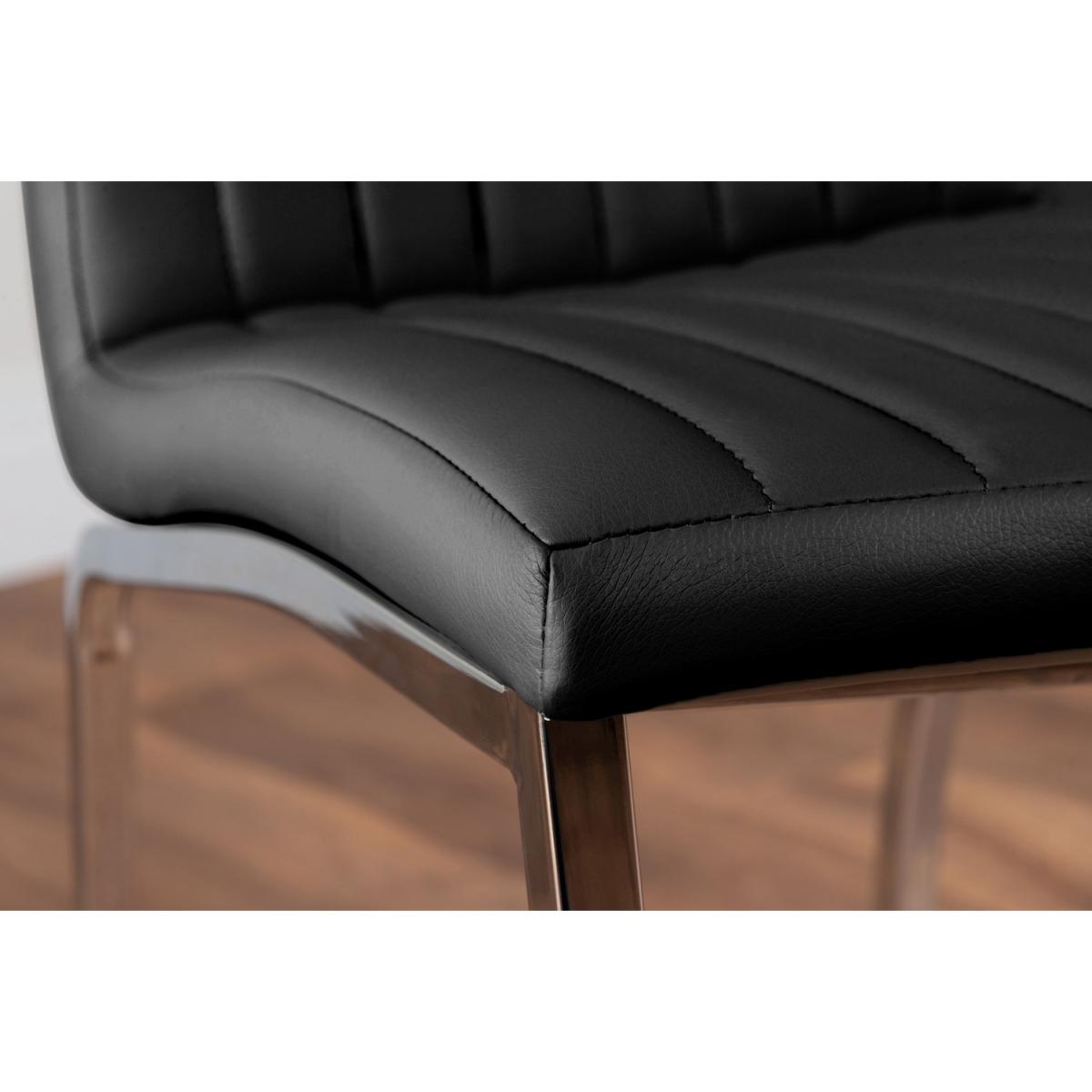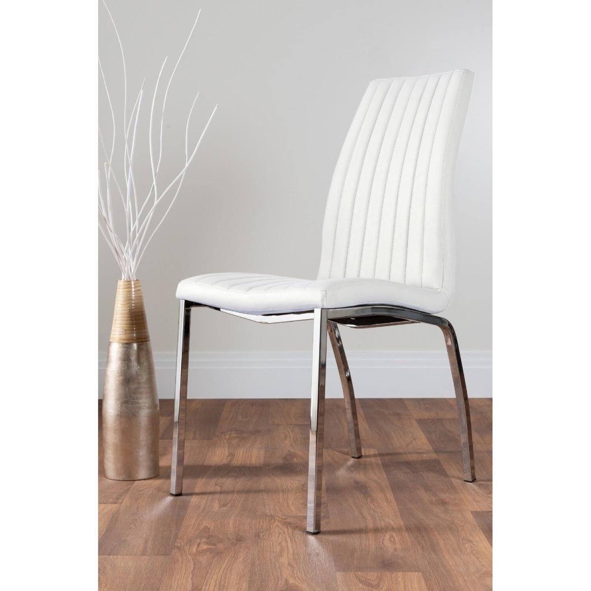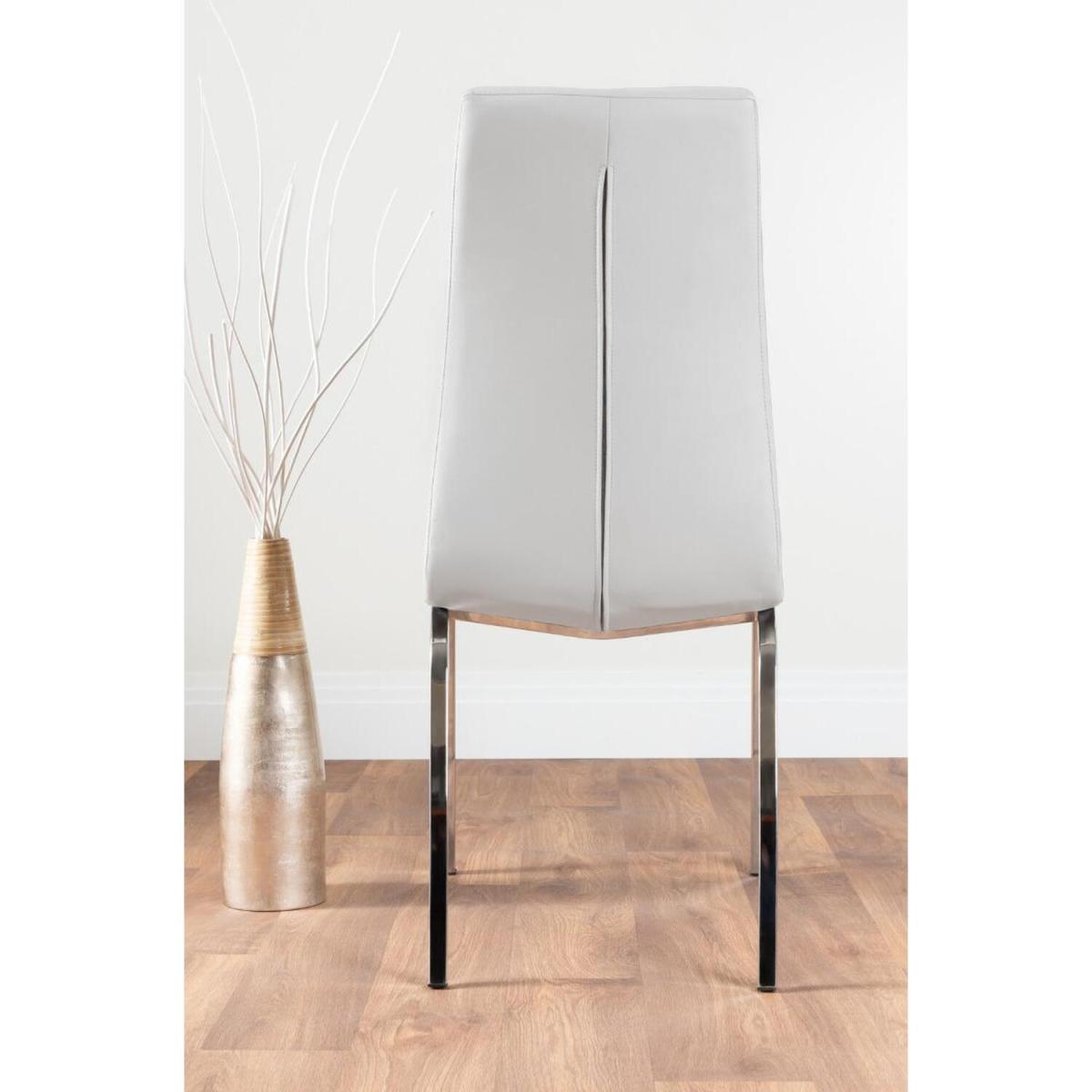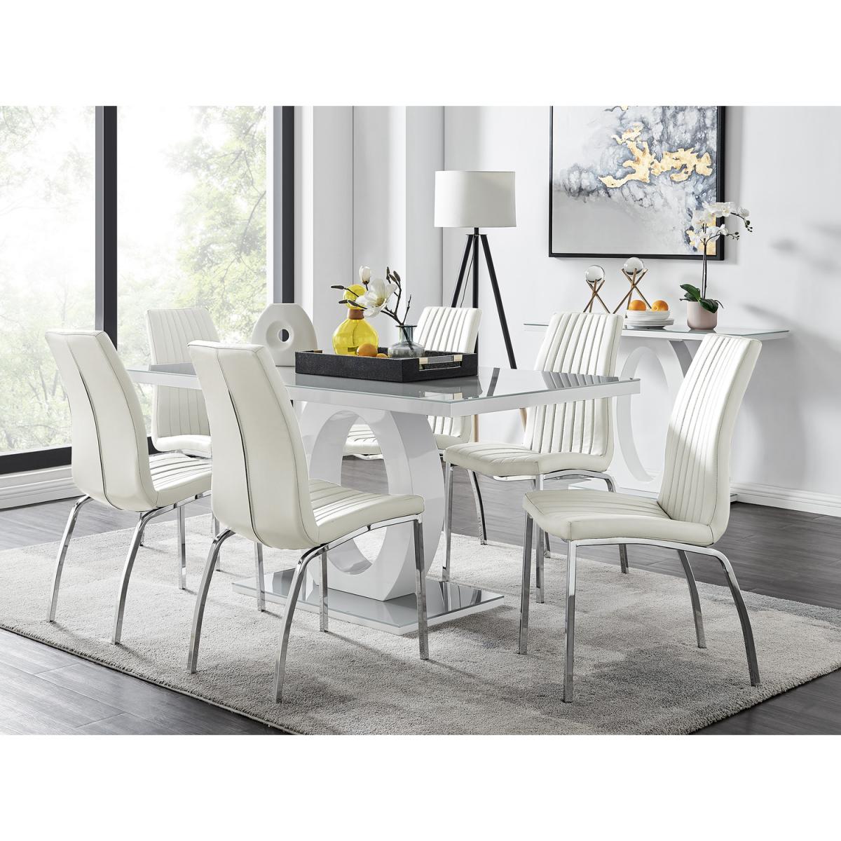 The Giovani table is arguably the most striking and artistic in our collection of bespoke high gloss tables. The beautifully designed Giovani will be the centrepiece of any modern home, combining not just design and function, but also affordability! The two-tone effect, along with the crisp clean lines, really does give it that modern wow factor. The Giovani has a large 160x90cm table top made from black tempered glass, is easy to maintain and offers plenty of room for dining with guests! Coupled with our Isco chrome and faux leather dining chairs clean lines combined with comfort and texture make them a perfect match to complete this dining set. The soft-touch faux leather seat pads are interspaced with vertical stitching and are designed for comfort with the bonus of looking great. Value for money with style combine to make an unbeatable package!