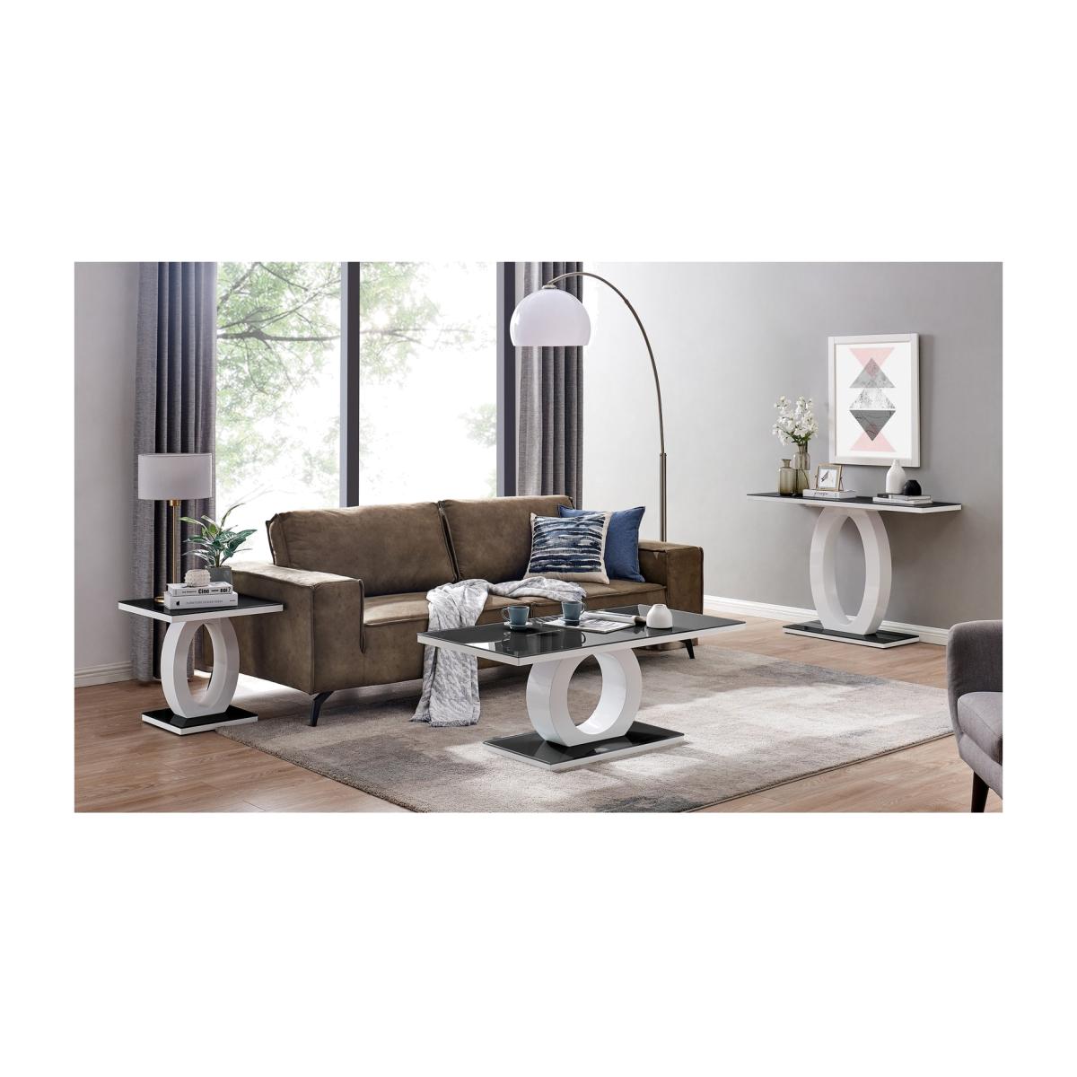 Giovani Black White High Gloss Glass Console Coffee End Side Table Set - Black
