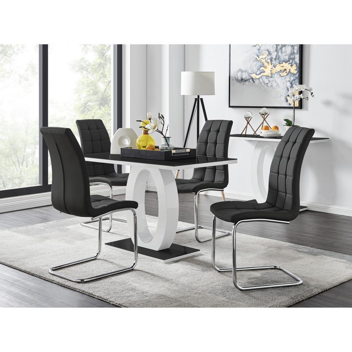 Our best selling Giovani dining table is the centrepiece of any dining room, with its rich high gloss and black glass surface, featuring a mesmerising halo structure. The Giovani ticks all the boxes of modern elegance for any home. Our 4 seater design generously offers a 120x70cm surface for those spaces that want seating on a grander scale while keeping class at the forefront. We do the beautiful Giovani table in a 6 seater design with a 160x90cm surface also. Paired alongside our beautiful faux leather Montero Chairs, the smooth contours of the hatched pad and the single-seat design combine to create a flowing feel to the Murano chair. It is shaped to offer maximum ergonomic support, whilst the deep foam cushion makes it a delight to sit on. Both inviting and sumptuous, the Murano is sure to be a strong contender in your quest for the right dining chair.