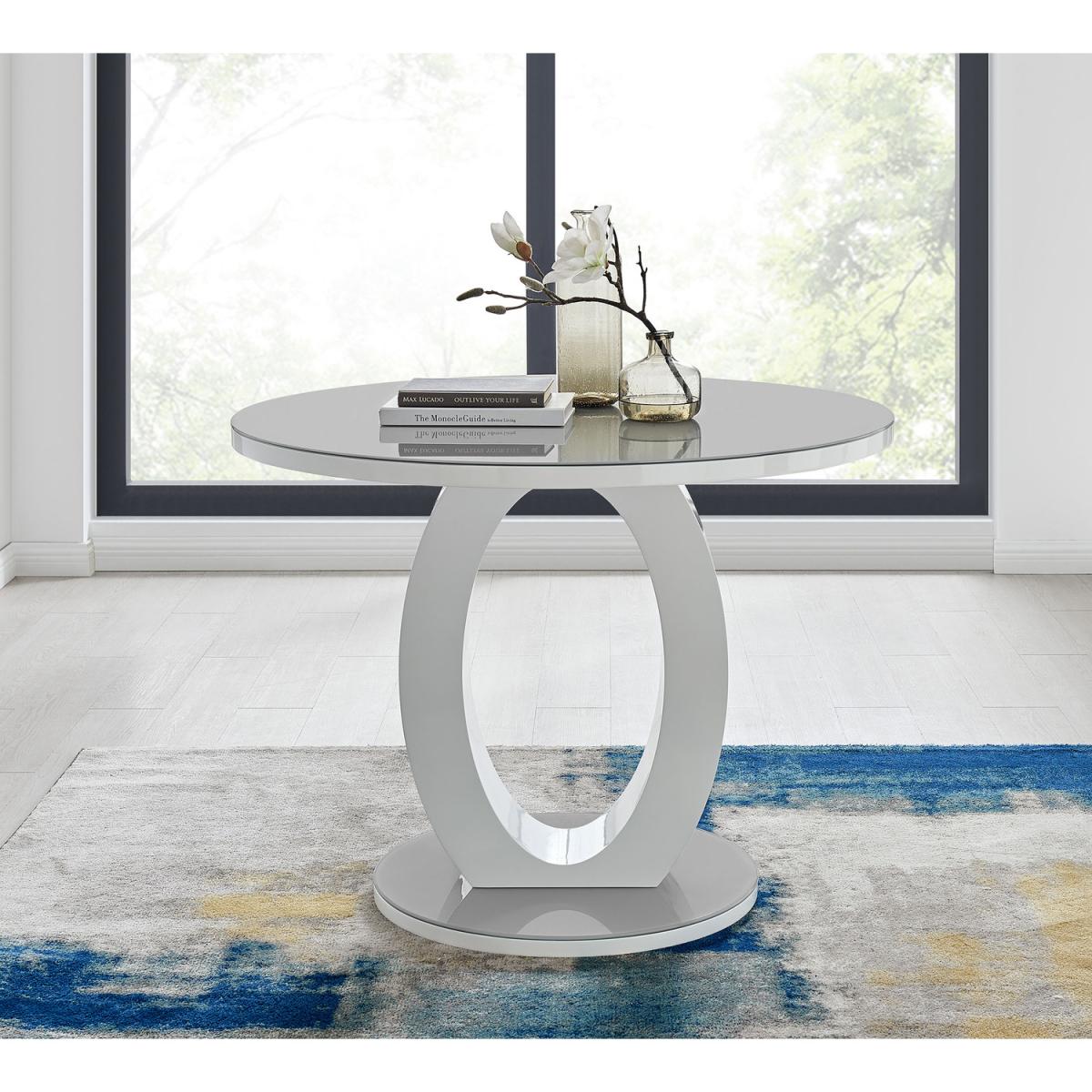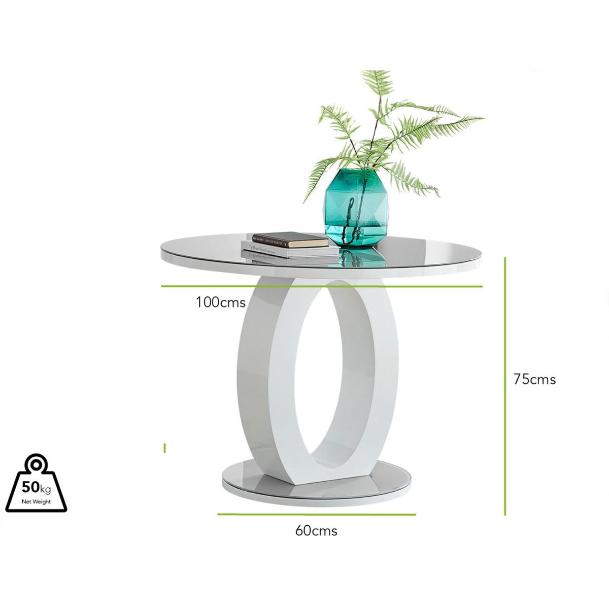 The Giovani table is arguably the most striking and artistic in our range of bespoke high gloss tables. The beautifully designed Giovani will be the centrepiece of any modern home, combining not just design and function, but also affordability! The two-tone effect, along with the crisp clean lines, really does give it that modern wow factor. The Giovani has a 100cmx100cm table top made from greytempered glass, is easy to maintain and offers plenty of room for dining with guests and seats up to 4. The gorgeous round glass table top, silhouetted by the circular base, combine beautifully to create a symmetrical centrepiece.