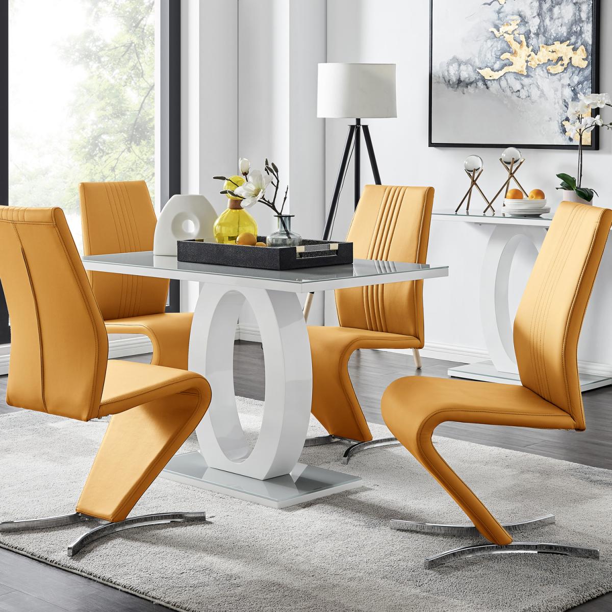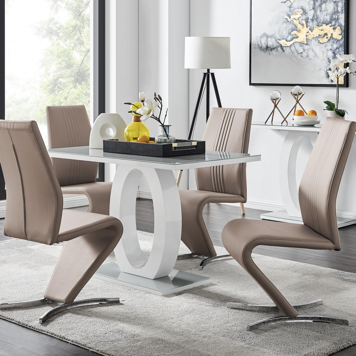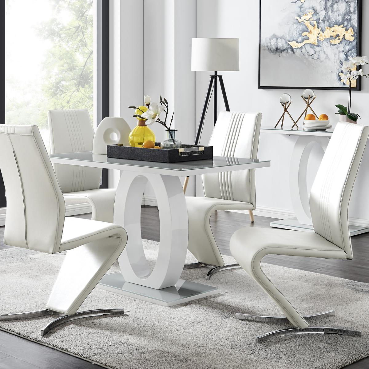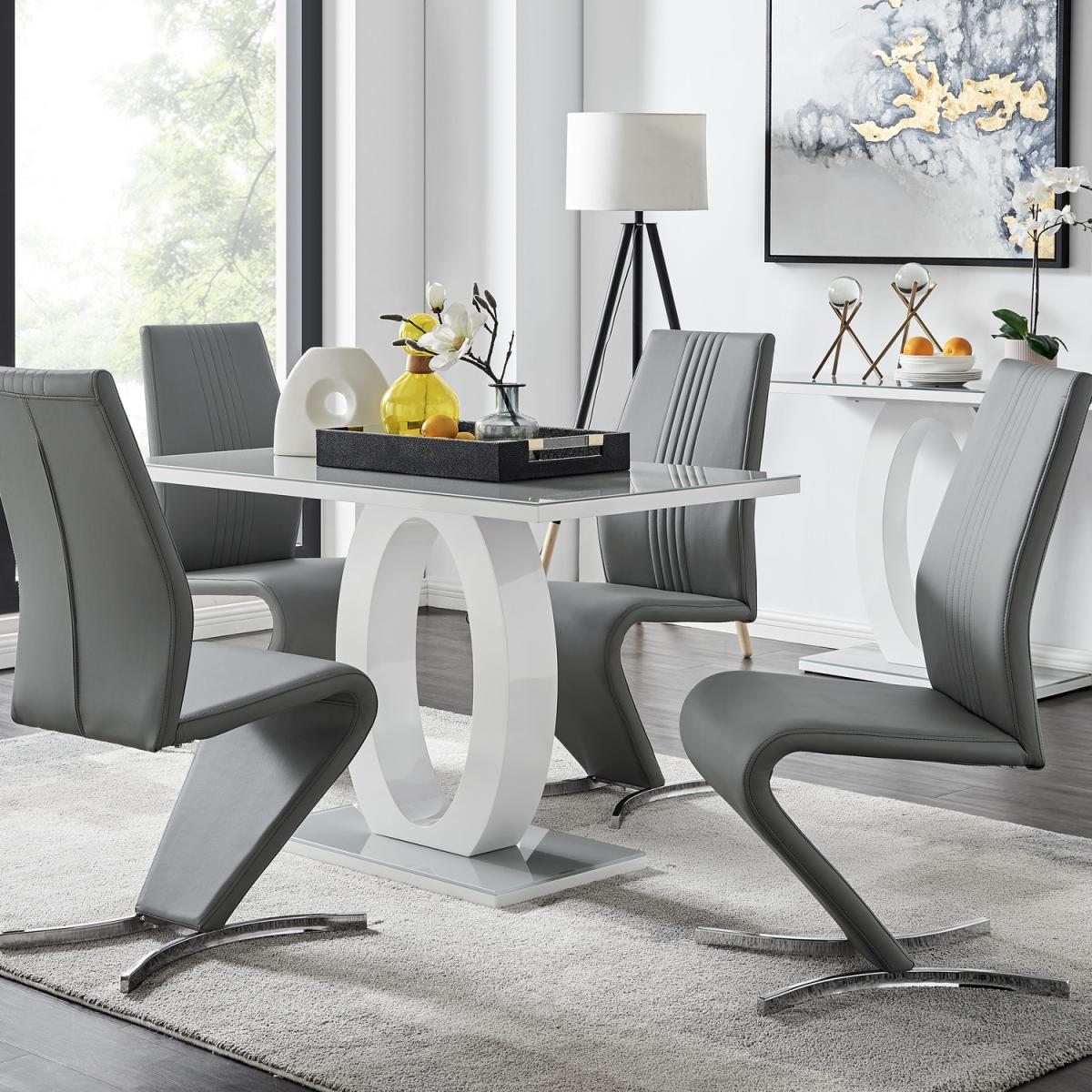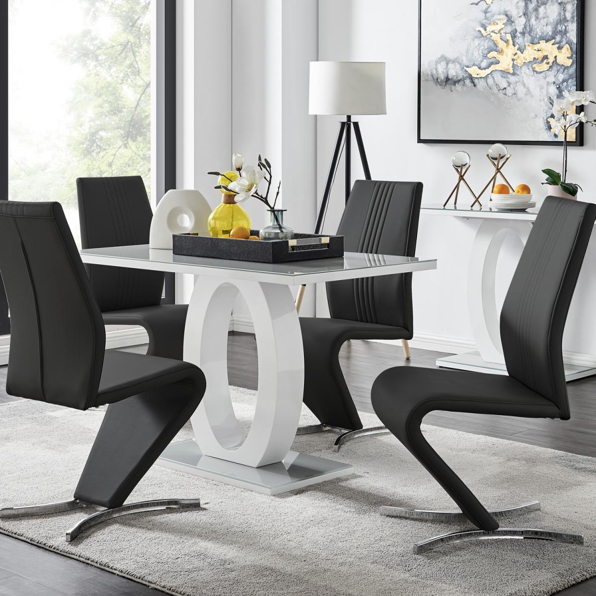 The Giovani table is arguably the most striking and artistic in our collection of bespoke high gloss tables. The beautifully designed Giovani will be the centrepiece of any modern home, combining not just design and function, but also affordability! The two-tone effect, along with the crisp clean lines, really does give it that modern wow factor. The Giovani has a 120cmx70cm table top made from grey tempered glass, is easy to maintain and offers plenty of room for dining with guests and seats up to 4. The gorgeous rectangular glass table top, silhouetted by the rectangular base, combine beautifully to create a symmetrical centrepiece. The Willow is a premium modern chair that ticks all the boxes. They are comfortable, look incredible and exude quality. These eye-catching chairs are fully padded throughout and have an ergonomically designed back support to maximise comfort. They also feature half-moon chromed feet, which give the chairs a sturdy base. The curved design gives the Willow chair a contemporary elegance and finishes this stunning set off perfectly.
