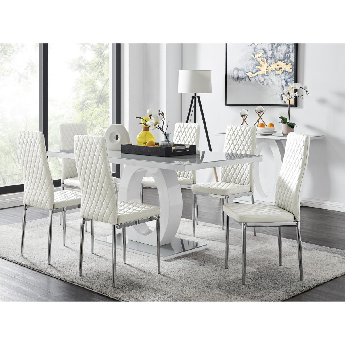 The Giovani table is arguably the most striking and artistic in our collection of bespoke high gloss tables. The beautifully designed Giovani will be the centrepiece of any modern home, combining not just design and function, but also affordability! The two-tone effect, along with the crisp clean lines, really does give it that modern wow factor. The Giovani has a 160cmx90cm table top made from black tempered glass, is easy to maintain and offers plenty of room for dining with guests and seats up to 6. The gorgeous rectangular glass table top, silhouetted by the rectangular base, combine beautifully to create a symmetrical centrepiece. Paired alongside our beautiful faux leather diamond quilted Milan chairs, you can't go wrong with this set. The chairs are made from high-quality faux leather and are ergonomically designed for maximum comfort and support. They feature soft touch faux leather with a deep foam seat cushion and plastic feet to protect the floor from any damage! With a real designer look alongside a feeling of luxury, just without the expensive price tag, this set is perfect for any dining space.