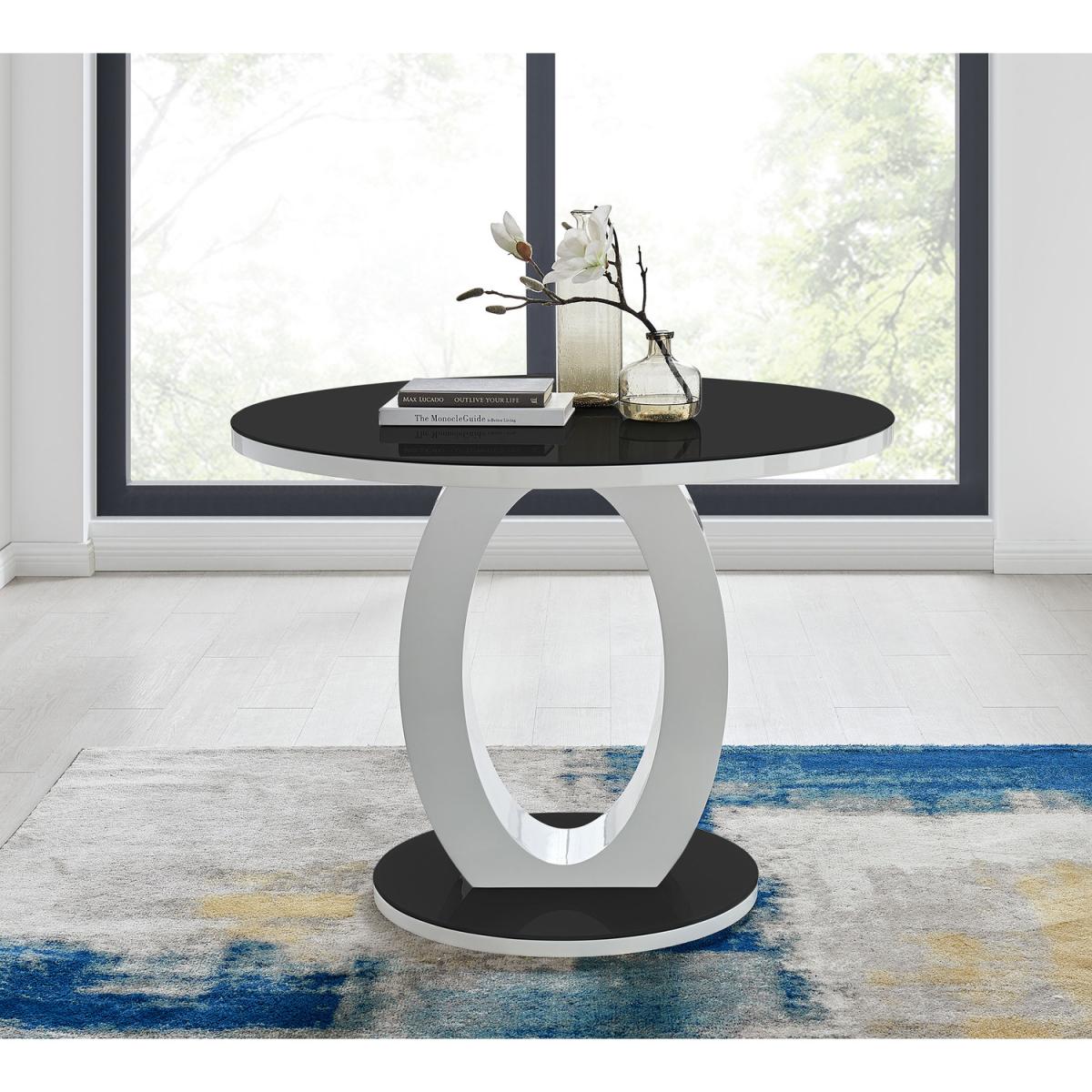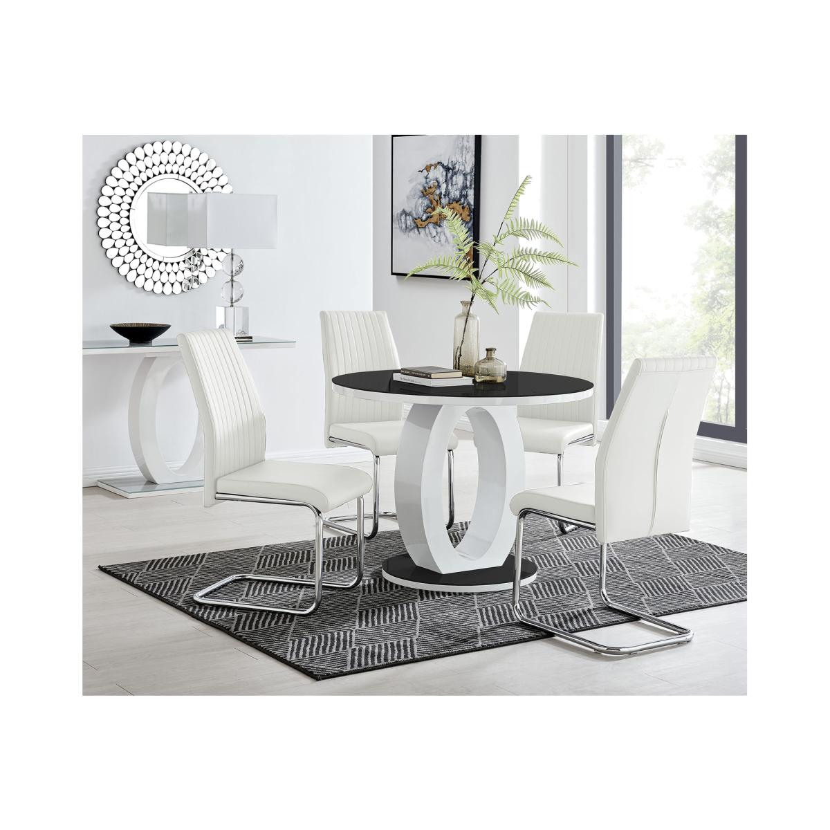 The Giovani table is arguably the most striking and artistic in our collection of bespoke high gloss tables. The beautifully designed Giovani will be the centrepiece of any modern home, combining not just design and function, but also affordability! The two-tone effect, along with the crisp clean lines, really does give it that modern wow factor. The Giovani has a 100cmx100cm table top made from black tempered glass, is easy to maintain and offers plenty of room for dining with guests and seats up to 4. The gorgeous round glass table top, silhouetted by the circular base, combine beautifully to create a symmetrical centrepiece. Pair the Giovani table with our Lorenzo chairs for a complete look. Featuring on-trend chrome cantilevered legs and supportive seat pads, these are eye-catching chairs, that don't compromise on comfort. With such an appealing design and price tag we just love it and are sure that you will too!