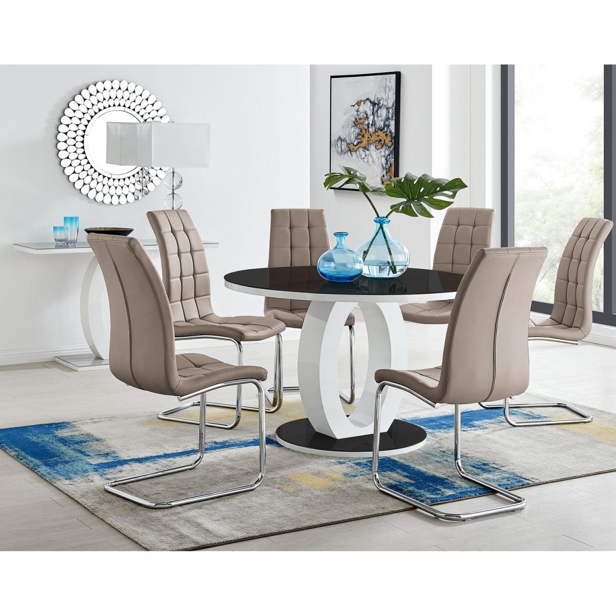 The Giovani round dining table is arguably the most striking and artistic in our range of bespoke high gloss tables. The beautifully designed Giovani will be the centrepiece of any modern home, combining not just design and function, but also affordability! The two-tone effect, along with the crisp clean lines, really does give it that modern wow factor. The Giovani has a 120x120cm table top made from black tempered glass, is easy to maintain and offers plenty of room for dining with guests! The gorgeous round glass table top, silhouetted by the circular base, combine beautifully to create a symmetrical centrepiece built and styled for the modern home. Pair it with our Lorenzo chairs for a luxury look. The smooth contours of the hatched pad and the single-seat design combine to create a flowing feel to the Murano chair. It is shaped to offer maximum ergonomic support, whilst the deep foam cushion makes it a delight to sit on. Both inviting and sumptuous, the Murano the finishing touch to this set.