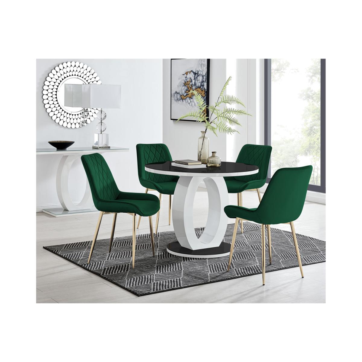 The Giovani table is arguably the most striking and artistic in our range of bespoke high gloss tables. The beautifully designed Giovani will be the centrepiece of any modern home, combining not just design and function, but also affordability! The two-tone effect, along with the crisp clean lines, really does give it that modern wow factor. The Giovani has a 100cmx100cm table top made from black tempered glass, is easy to maintain and offers plenty of room for dining with guests and seats up to 4. The gorgeous round glass table top, silhouetted by the circular base, combine beautifully to create a symmetrical centrepiece. Modernise your dining area with our luxurious velvet upholstered Pesaro Dining Chairs. With a nod to the Mid-century modern design era, the Pesaro features gorgeous textured diamond stitching with an ergonomically designed curved seat pad blending seamlessly to the supporting medium high back rest. Sat atop elegant slightly tapered legs in black, chrome or gold effect. The Pesaro is a perfect match to any dining table or use as a luxe vanity seat in the bedroom, as an occasional chair for the living area or to add a bit of luxury to your home office.
