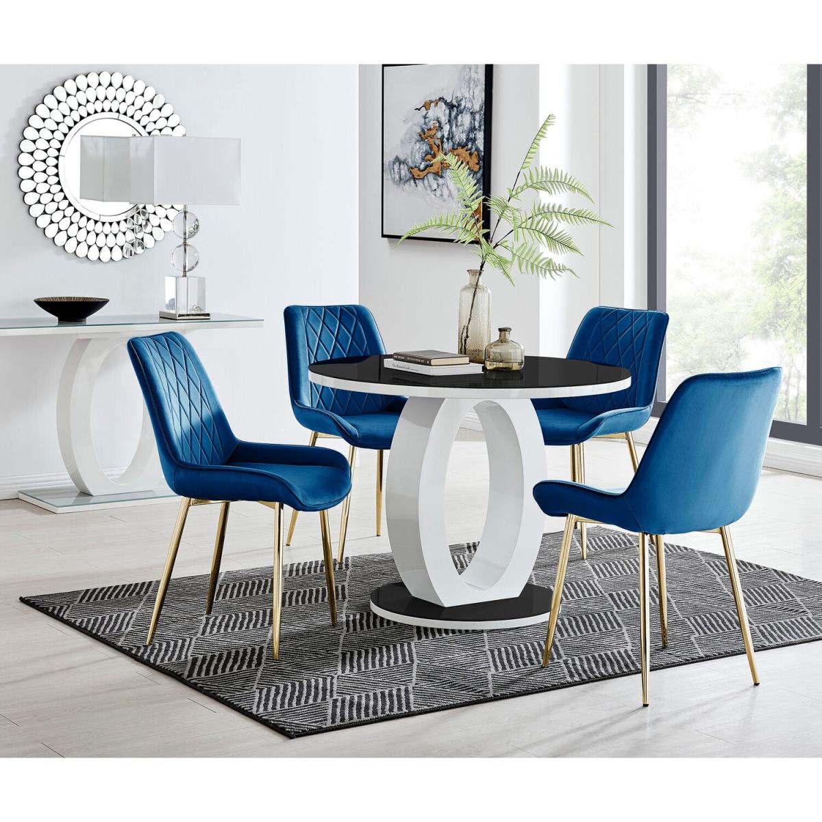 The Giovani round dining table is arguably the most striking and artistic in our range of bespoke high gloss tables. The beautifully designed Giovani will be the centrepiece of any modern home, combining not just design and function, but also affordability! The two-tone effect, along with the crisp clean lines, really does give it that modern wow factor. The Giovani has a 120x120cm table top made from black tempered glass, is easy to maintain and offers plenty of room for dining with guests! The gorgeous round glass table top, silhouetted by the circular base, combine beautifully to create a symmetrical centrepiece built and styled for the modern home. Modernise your dining area with our luxurious velvet upholstered Pesaro Dining Chairs. With a nod to the Mid-century modern design era, the Pesaro features gorgeous textured diamond stitching with an ergonomically designed curved seat pad blending seamlessly to the supporting medium high back rest. Sat atop elegant slightly tapered legs in black, chrome or gold effect. The Pesaro is a perfect match to any dining table or use as a luxe vanity seat in the bedroom, as an occasional chair for the living area or to add a bit of luxury to your home office.