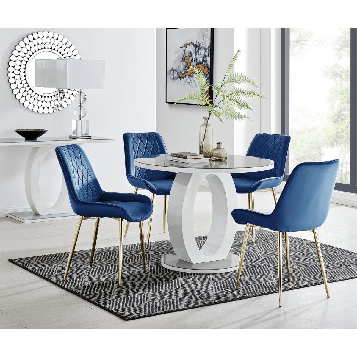 The Giovani table is arguably the most striking and artistic in our range of bespoke high gloss tables. The beautifully designed Giovani will be the centrepiece of any modern home, combining not just design and function, but also affordability! The two-tone effect, along with the crisp clean lines, really does give it that modern wow factor. The Giovani has a 100cmx100cm table top made from grey tempered glass, is easy to maintain and offers plenty of room for dining with guests and seats up to 4. The gorgeous round glass table top, silhouetted by the circular base, combine beautifully to create a symmetrical centrepiece. Modernise your dining area with our luxurious velvet upholstered Pesaro Dining Chairs. With a nod to the Mid-century modern design era, the Pesaro features gorgeous textured diamond stitching with an ergonomically designed curved seat pad blending seamlessly to the supporting medium high back rest. Sat atop elegant slightly tapered legs in black, chrome or gold effect. The Pesaro is a perfect match to any dining table or use as a luxe vanity seat in the bedroom, as an occasional chair for the living area or to add a bit of luxury to your home office.