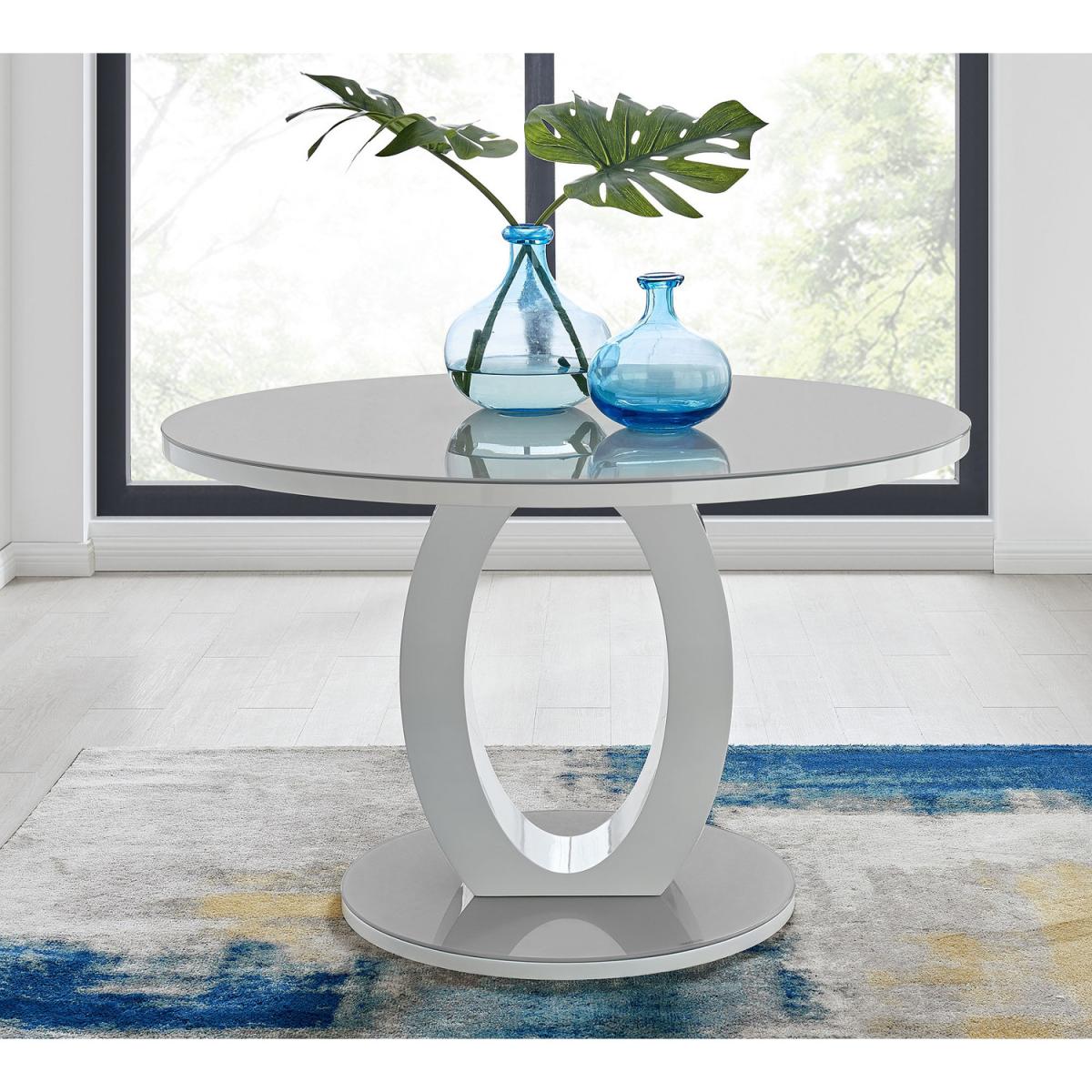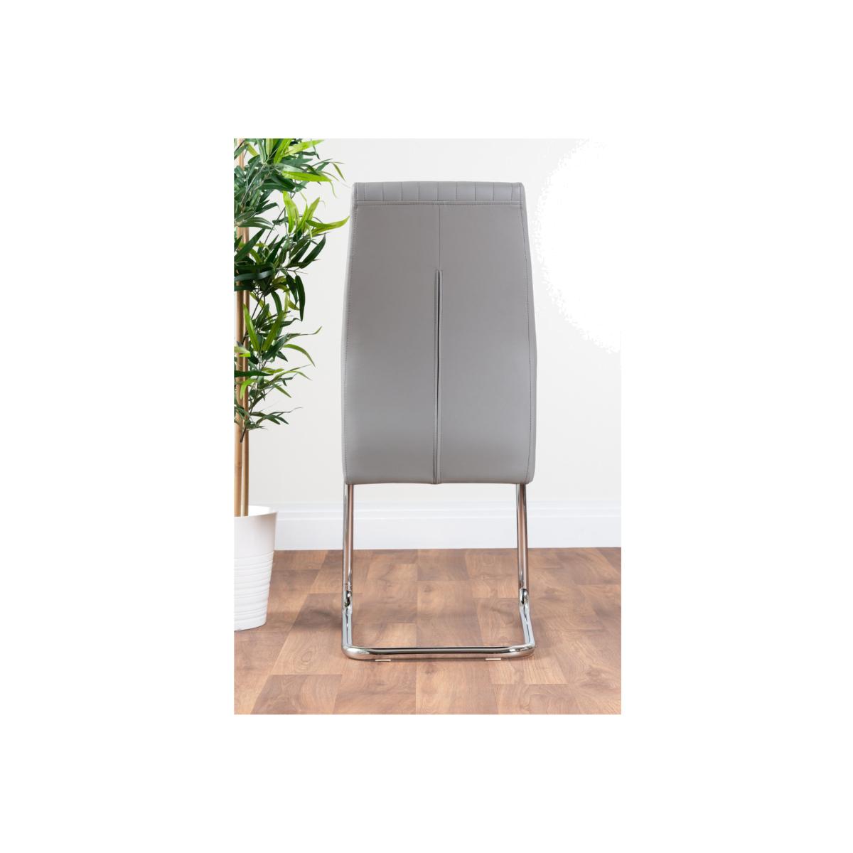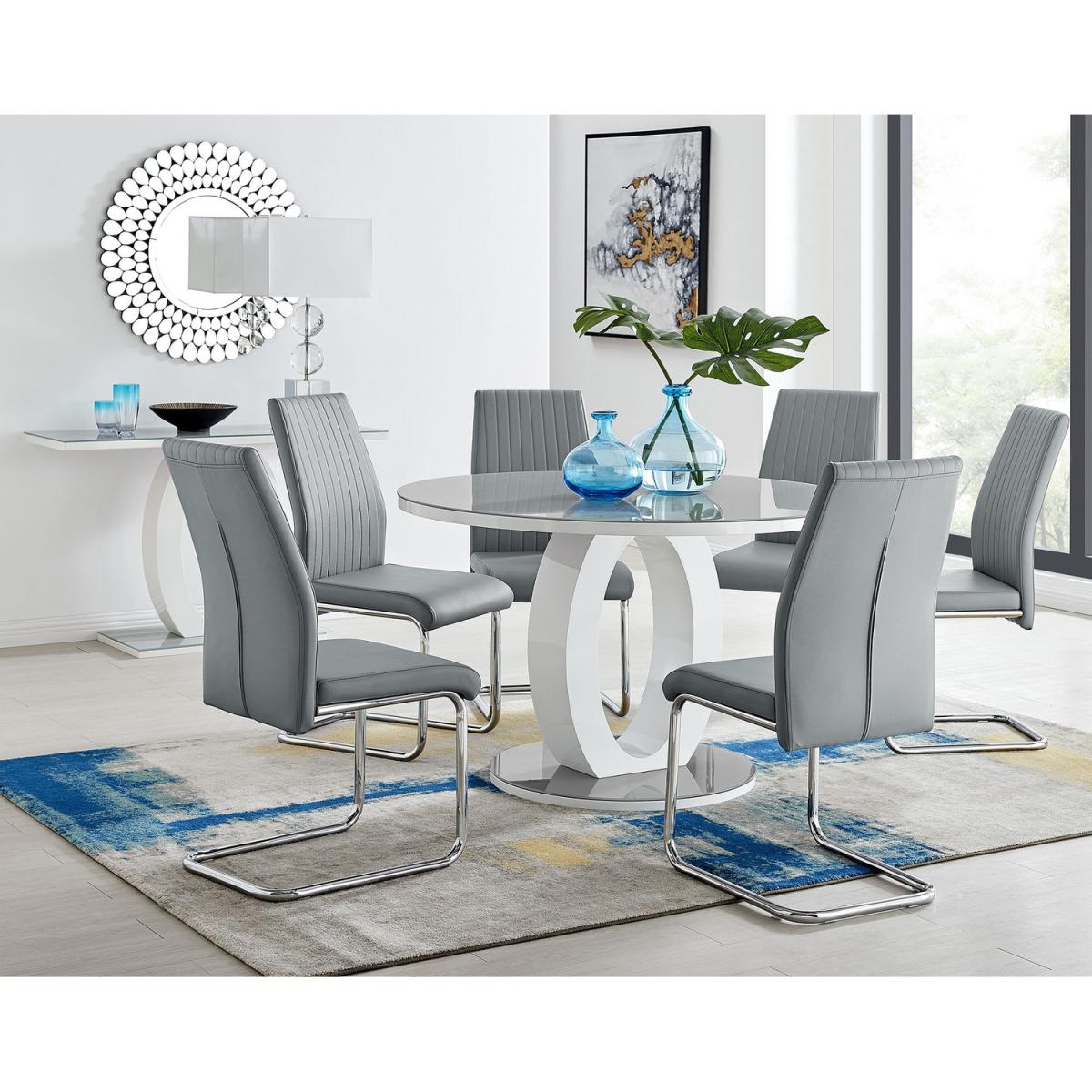The Giovani table is arguably the most striking and artistic in our range of bespoke high gloss tables. The beautifully designed Giovani will be the centrepiece of any modern home, combining not just design and function, but also affordability! The two-tone effect, along with the crisp clean lines, really does give it that modern wow factor. The Giovani has a 120cmx120cm table top made from grey tempered glass, is easy to maintain and offers plenty of room for dining with guests and seats up to 6. The gorgeous round glass table top, silhouetted by the circular base, combine beautifully to create a symmetrical centrepiece. Paired alongside our beautiful faux leather Murano chairs, with their smooth contours of the hatched pad and the single seat design combine to create a flowing feel to the Murano chair. It is shaped to offer maximum ergonomic support, whilst the deep foam cushion makes it delight to sit on. Both inviting and sumptuous, the Murano is sure to be a strong contender in your quest for the right dining chair.