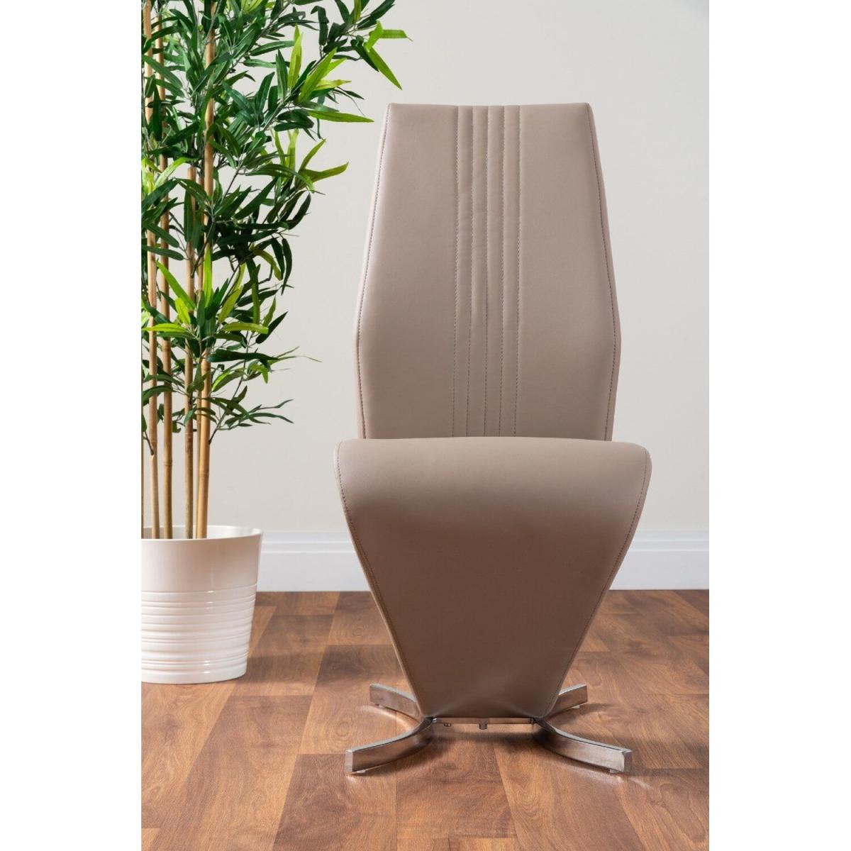 The Giovani table is arguably the most striking and artistic in our range of bespoke high gloss tables. The beautifully designed Giovani will be the centrepiece of any modern home, combining not just design and function, but also affordability! The two-tone effect, along with the crisp clean lines, really does give it that modern wow factor. The Giovani has a 120cmx120cm table top made from grey tempered glass, is easy to maintain and offers plenty of room for dining with guests and seats up to 6. The gorgeous round glass table top, silhouetted by the circular base, combine beautifully to create a symmetrical centrepiece. The Willow is a premium modern chair that ticks all the boxes. They are comfortable, look incredible and exude quality. These eye-catching chairs are fully padded throughout and have an ergonomically designed back support to maximise comfort. They also feature half-moon chromed feet, which give the chairs a sturdy base. The curved design gives the Willow chair a contemporary elegance and finishes this stunning set off perfectly.