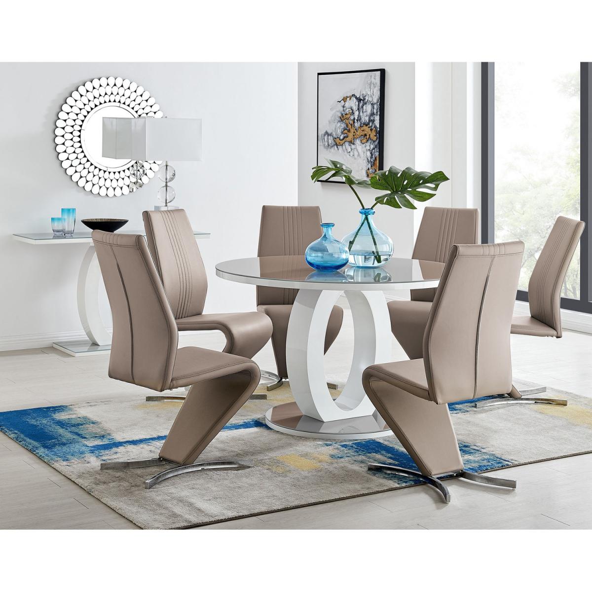 The Giovani table is arguably the most striking and artistic in our range of bespoke high gloss tables. The beautifully designed Giovani will be the centrepiece of any modern home, combining not just design and function, but also affordability! The two-tone effect, along with the crisp clean lines, really does give it that modern wow factor. The Giovani has a 120cmx120cm table top made from grey tempered glass, is easy to maintain and offers plenty of room for dining with guests and seats up to 6. The gorgeous round glass table top, silhouetted by the circular base, combine beautifully to create a symmetrical centrepiece. The Willow is a premium modern chair that ticks all the boxes. They are comfortable, look incredible and exude quality. These eye-catching chairs are fully padded throughout and have an ergonomically designed back support to maximise comfort. They also feature half-moon chromed feet, which give the chairs a sturdy base. The curved design gives the Willow chair a contemporary elegance and finishes this stunning set off perfectly.