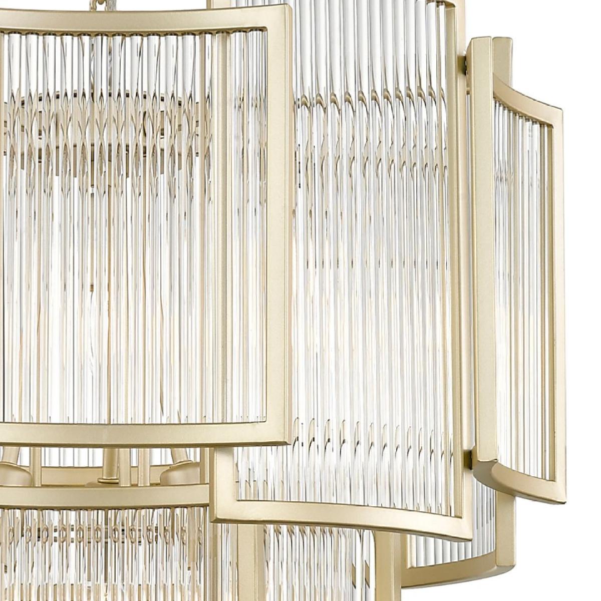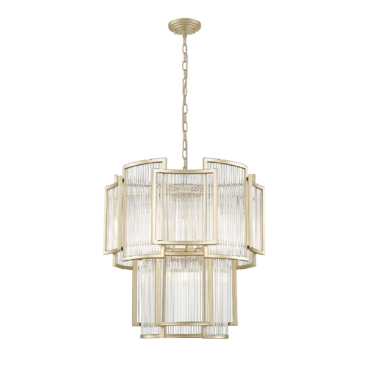 8-Light contemporary ceiling pendant featuring crystal shades and matt gold finish. An exquisite blend of modern design and timeless elegance, the Giovanna 8-light pendant exudes a luxurious vibe, adding a touch of glamour to your home. The 2-tiered, crystal plated shade adds depth and dimension, creating a captivating visual effect while casting a warm and inviting glow. Elevate the ambience of any room with this chic and functional masterpiece. 8-Light contemporary ceiling pendant featuring crystal shades and matt gold finish. An exquisite blend of modern design and timeless elegance, the Giovanna 8-light pendant exudes a luxurious vibe, adding a touch of glamour to your home. The 2-tiered, crystal plated shade adds depth and dimension, creating a captivating visual effect while casting a warm and inviting glow. Elevate the ambience of any room with this chic and functional masterpiece.
