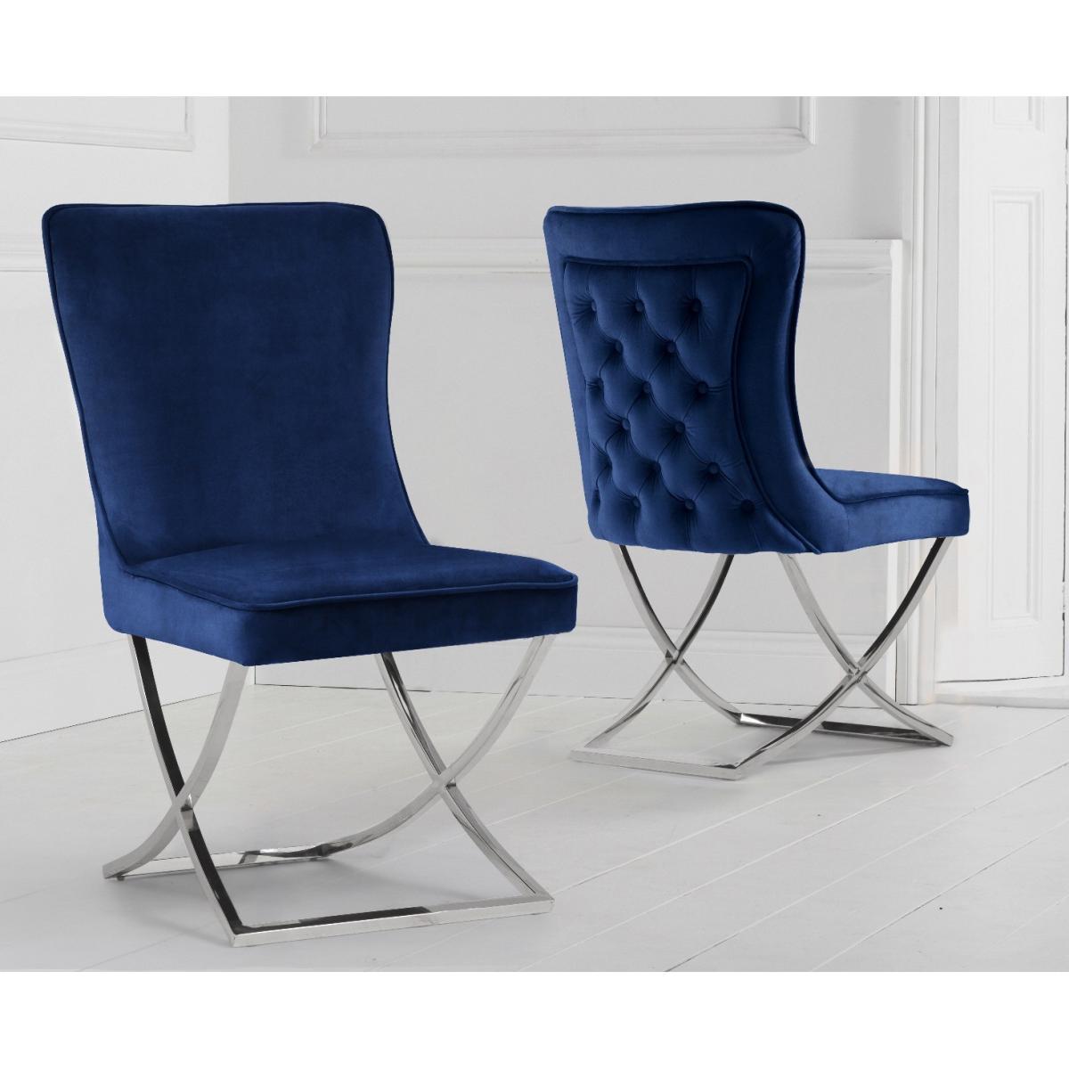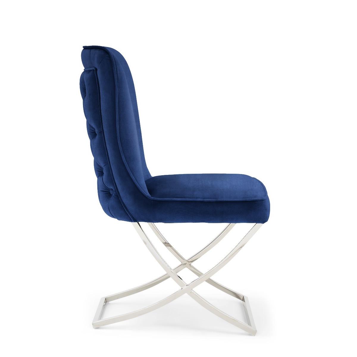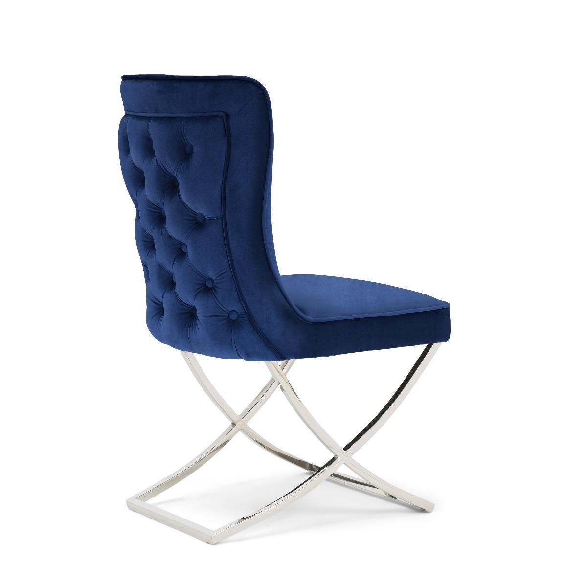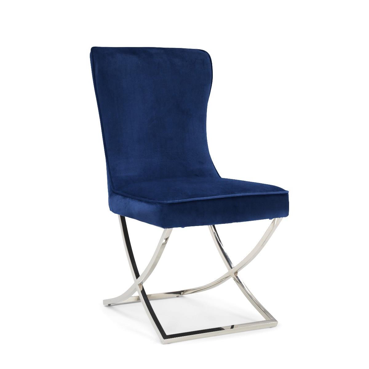 Giovanni Blue Velvet Dining Chairs - Blue, 2 Chairs