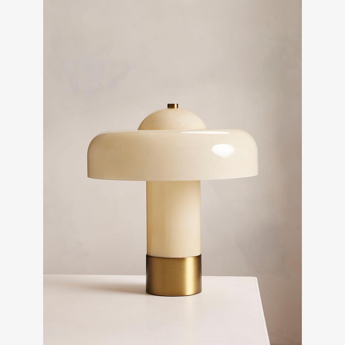 The domed silhouette of this table lamp is made from cream, moulded glass. Made from coloured glass to create a soft, ambient glow, the Giovanni lamp's domed silhouette takes style cues from the floor lamps that illuminate the pool area of 180 House.