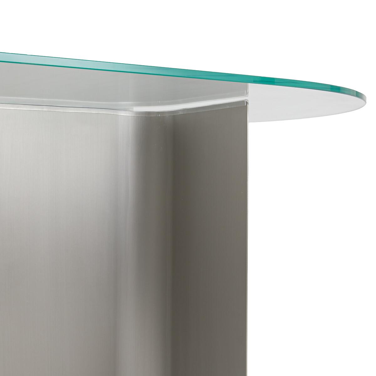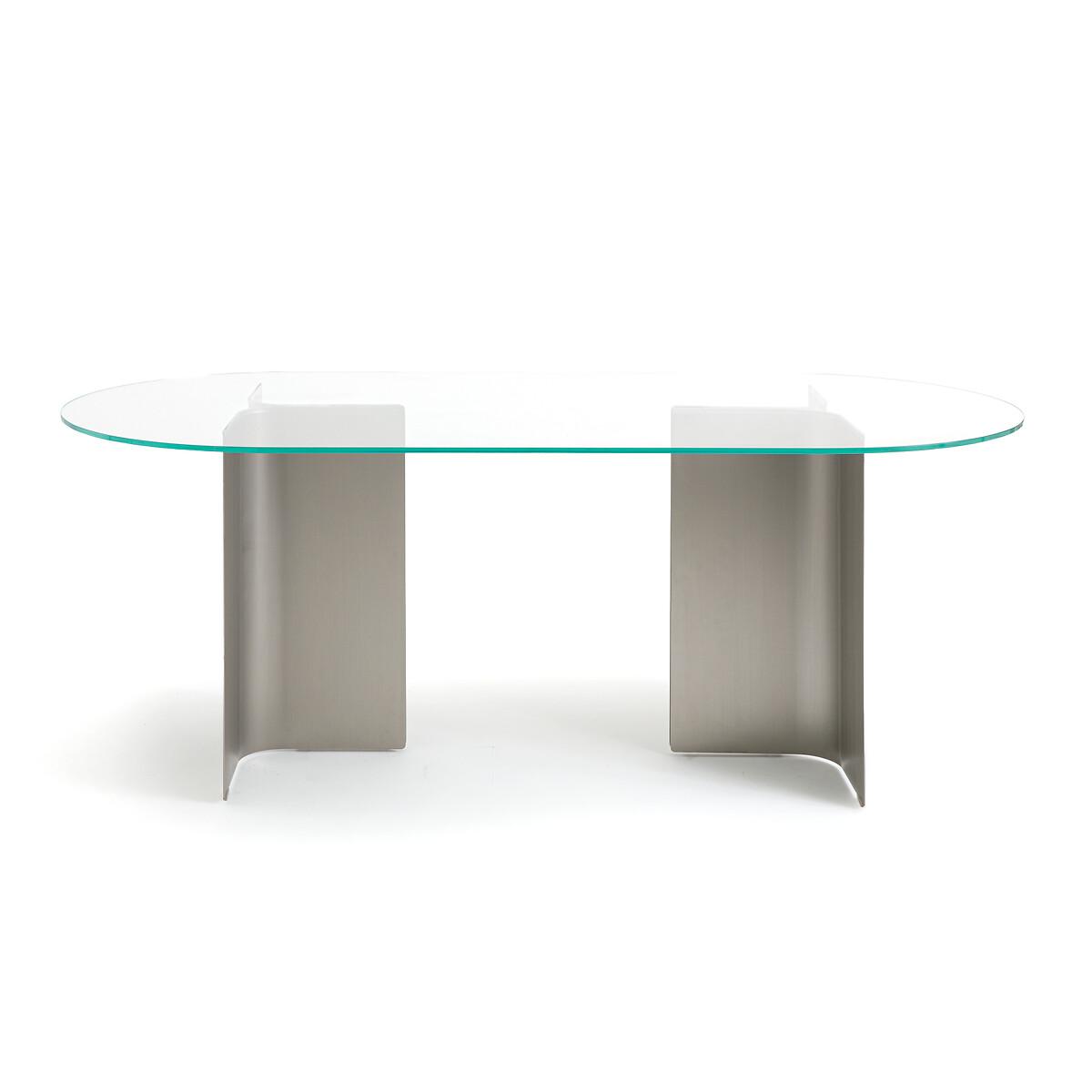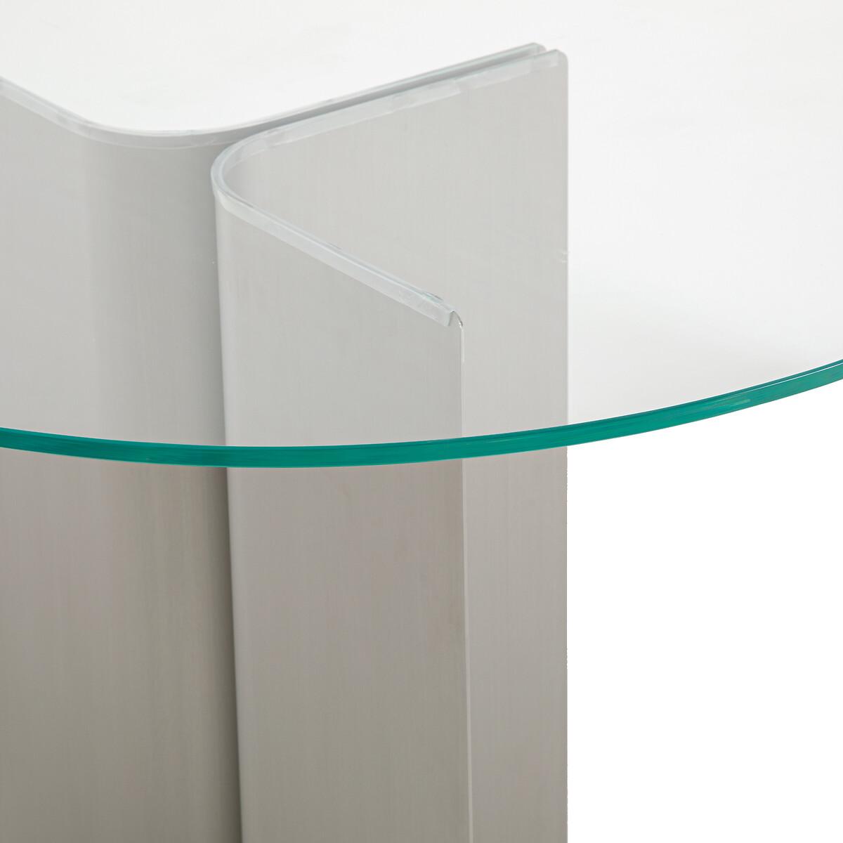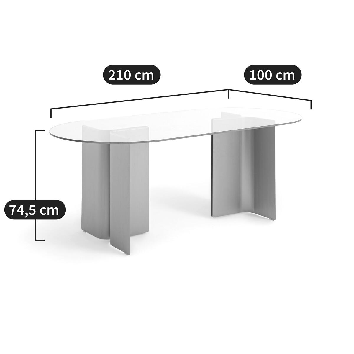 Design and sculpture characterise the Gira dining table. The transparent tempered glass top reveals the curved lines of the base.