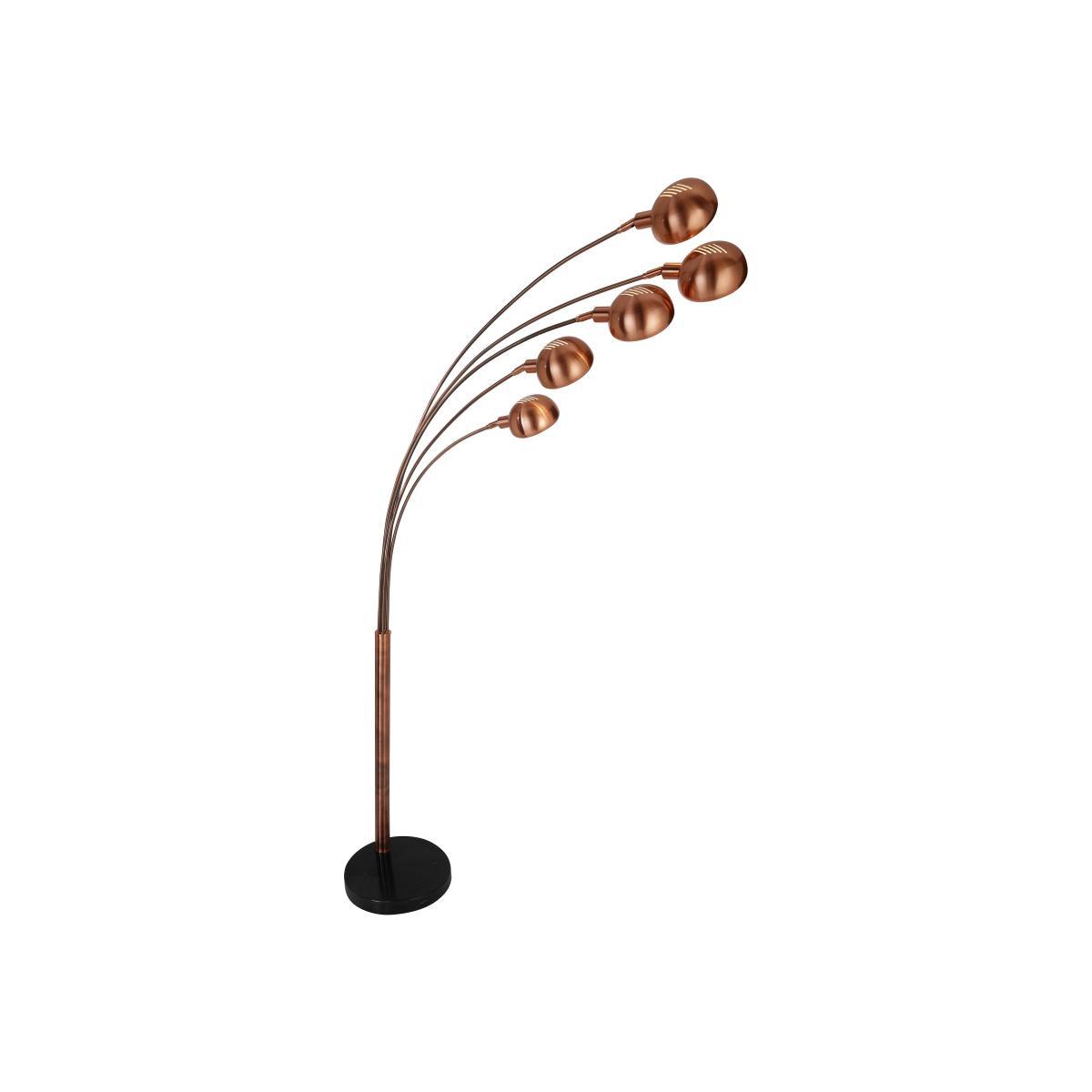 Ultra-modern multi shade metal floor lamp. 5 stylish, glossy shades. Available in a chrome or copper finish. Inspired by Italian design. With its striking arc shaped silhouette, the Giraffe 5 light floor lamp is an uber-stylish finishing touch. A grand impact is made by its 5 dome-shaped, shiny metal shades extending out on graduated slim metal stems. The light has a solid round marble base giving it stability. Perfect for brightening up a corner, this versatile modern floor light can also be used for task lighting. With five 40 watt, E14 bulbs. Dimensions. Width: 119cm (47in). Height: 208cm (82in).