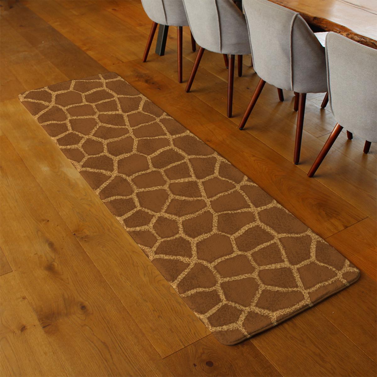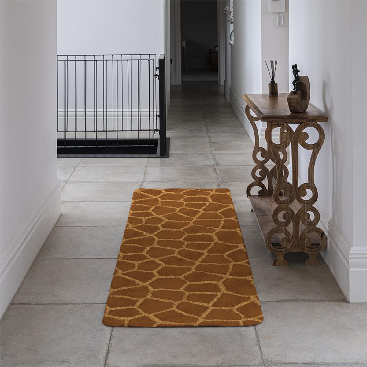 I really like this giraffe print runner rug for adding a touch of playful personality to transitional spaces like hallways or alongside beds. It works particularly well in casual or eclectic interiors where animal print patterns can inject a bit of fun without overwhelming the decor. To style it effectively, consider pairing with neutral furnishings to allow the pattern and warm brown tones to stand out, and remember that it's a practical choice as it’s easy to vacuum and maintain. It's also a great option for busy areas because its length helps protect the flooring and adds visual interest without being too bold.