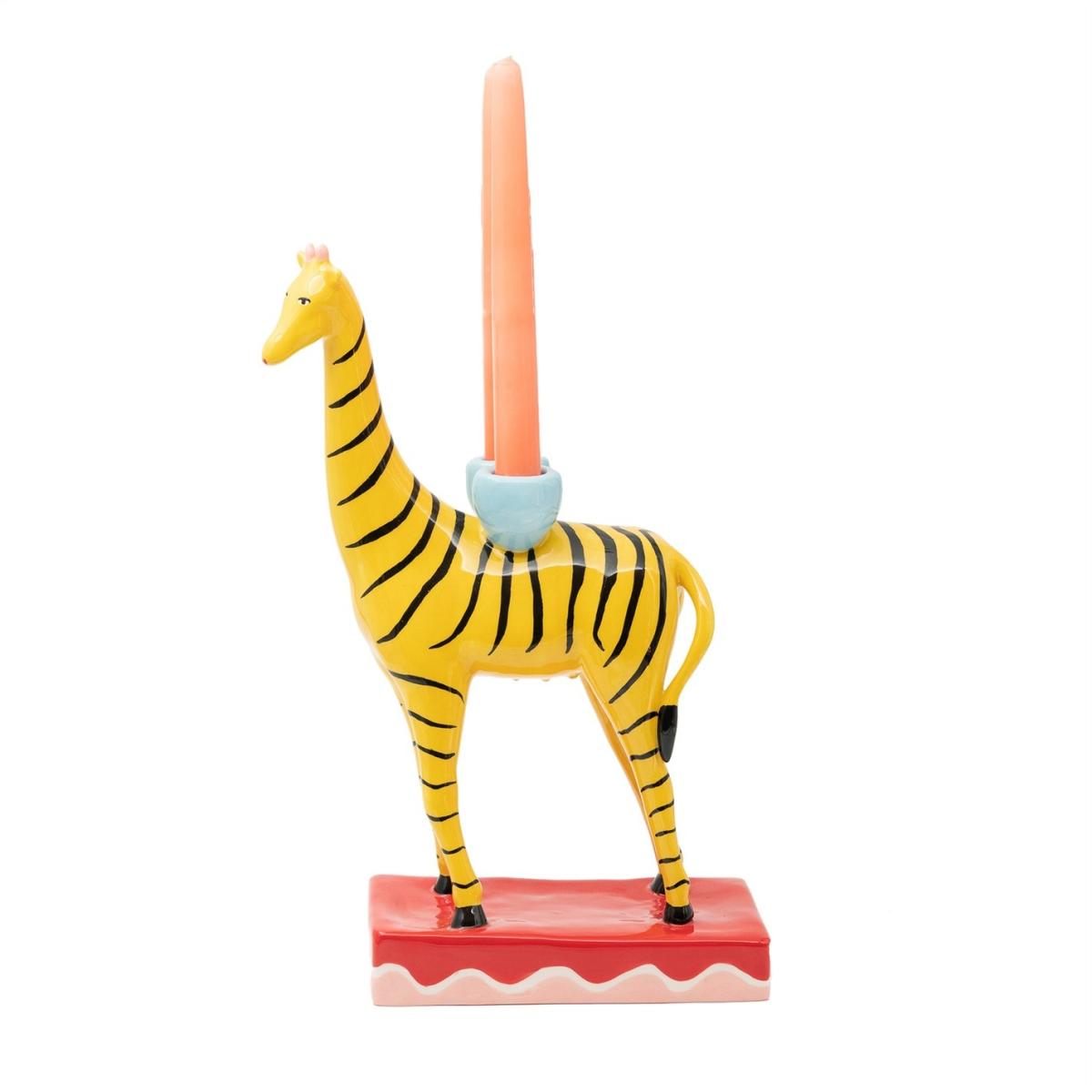 I’m a big fan of the little giraffe candle holder for its bold pop of colour and easygoing charm. It sits equally well in a pared-back Scandi living room as it does in a more eclectic, boho setting, where its quirky stripes can play off patterned cushions or rattan pieces. For styling, perch it on a mantel or open shelf alongside a few glass vases in soft tones, or group it with candles of differing heights to create a sculptural vignette that feels casual but considered.