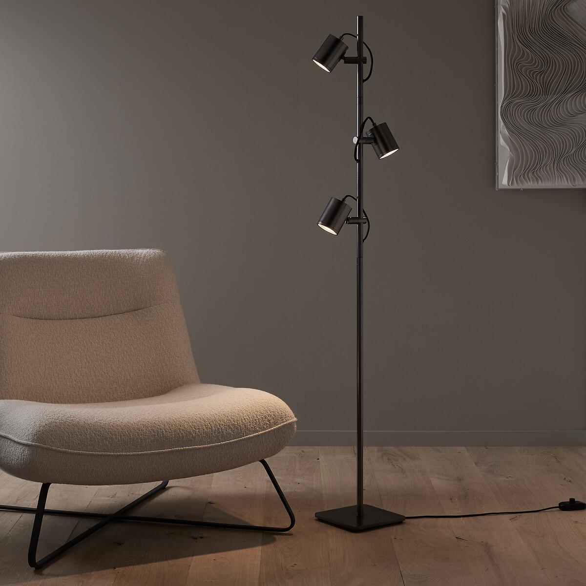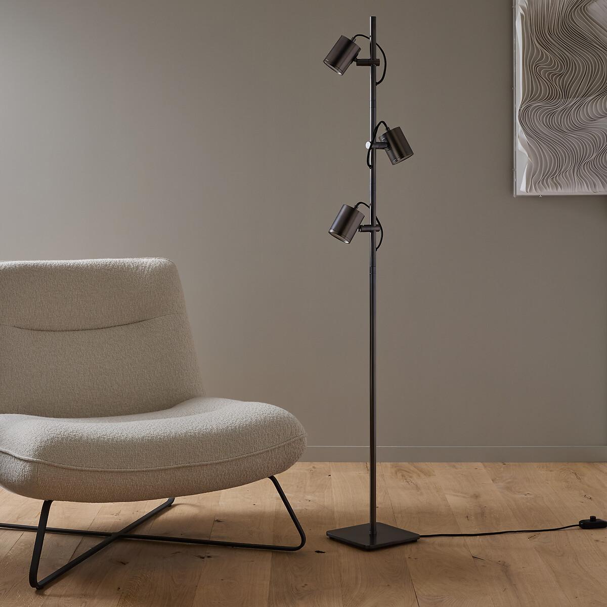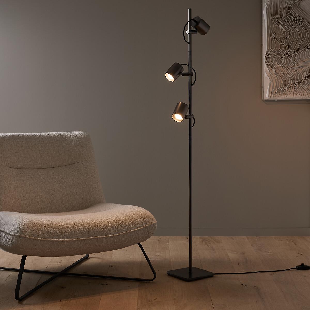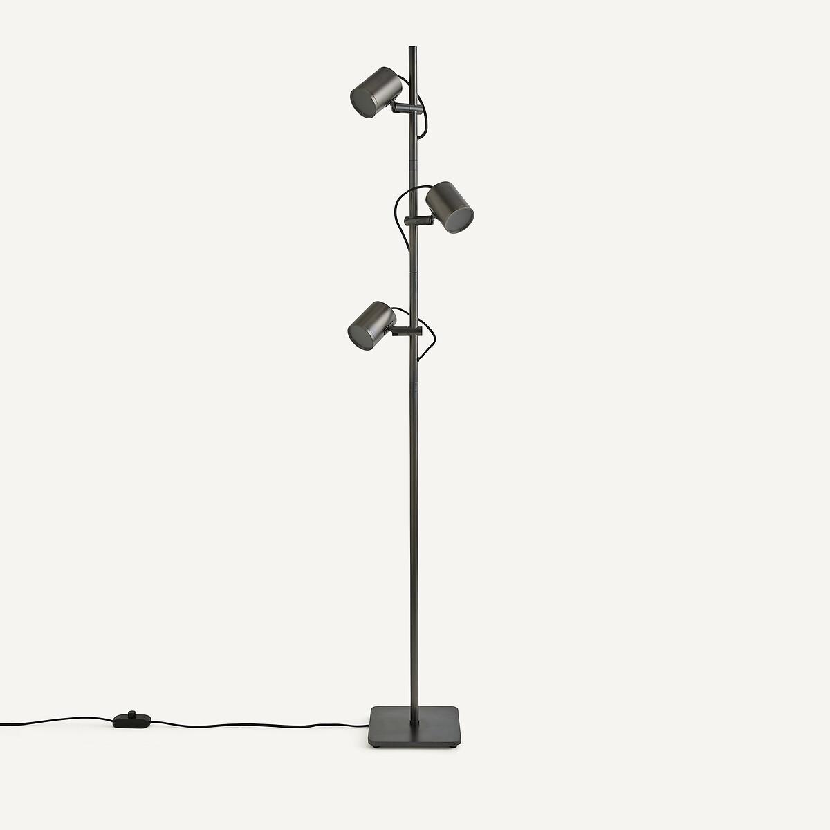 The Girevole floor lamp is characterised by a clean and timeless line inspired by the 70s. The satin nickel or graphite finish enhances its contemporary look and blends in perfectly with any interior. Three 360° adjustable spotlights let you direct the light exactly where you want it. Product Details • Iron with epoxy • Polypropylene textile sheathed electrical cable • 3 adjustable diffusers • Dimmable switch • Supports for GU10 socket • For bulbs (not included): 5W maxDimensions. Spotlight • Diameter: 7.2cm • Height: 9.5cm/4"Base • Width: 21cm • Depth: 21cm • Height: 1cm/0.5"Overall • Height: 153.2cm • Weight: 5.5kg • Sold pre-assembled. Dimensions and weight of parcel1 parcel • W27 x H161.5cm, 7kg