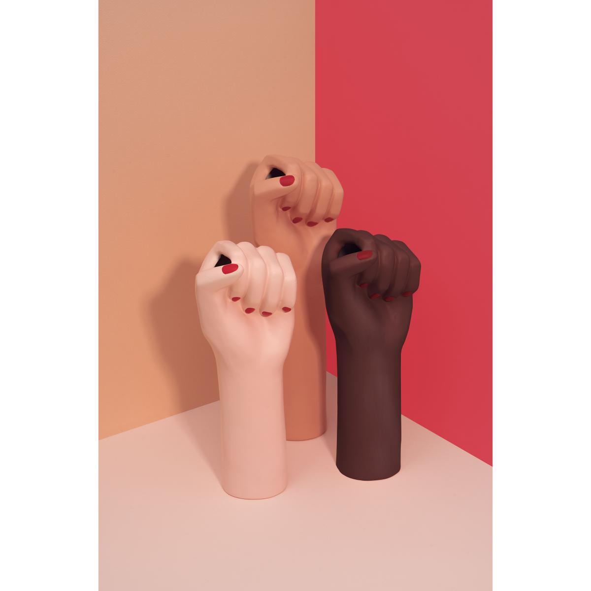 Engaged decor. New York designer Deva Pardue, a women's rights activist, has created a collection of quirky, funky vases, a symbol of Girl Power! These raised fists with their flamboyant red nails represent the struggle by women of all origins who advocate for gender equality and rights. 5% of sales are donated to For All Womankin: this public-interest organisation founded by Deva Pardue raises funds for non-profit organisations working to promote women's rights around the world. The raised fist, the emblem of protest iconography, is the distinctive sign chosen by Deva Pardue to embody her action. These vases are true sculptures in an arty style that has an extraordinary expressive force. These body fragments offer a surrealistic representation of the human body, reduced down to detail, detached from the figure from which they come. Evoking a human body by fragmentation also above all means evoking its missing part: these outstretched arms evoke all women, militant or anonymous, who act daily for greater openness, tolerance and respect. In addition to supporting a good cause, this eccentric, impertinent vase will become one of the key pieces of your decor.
