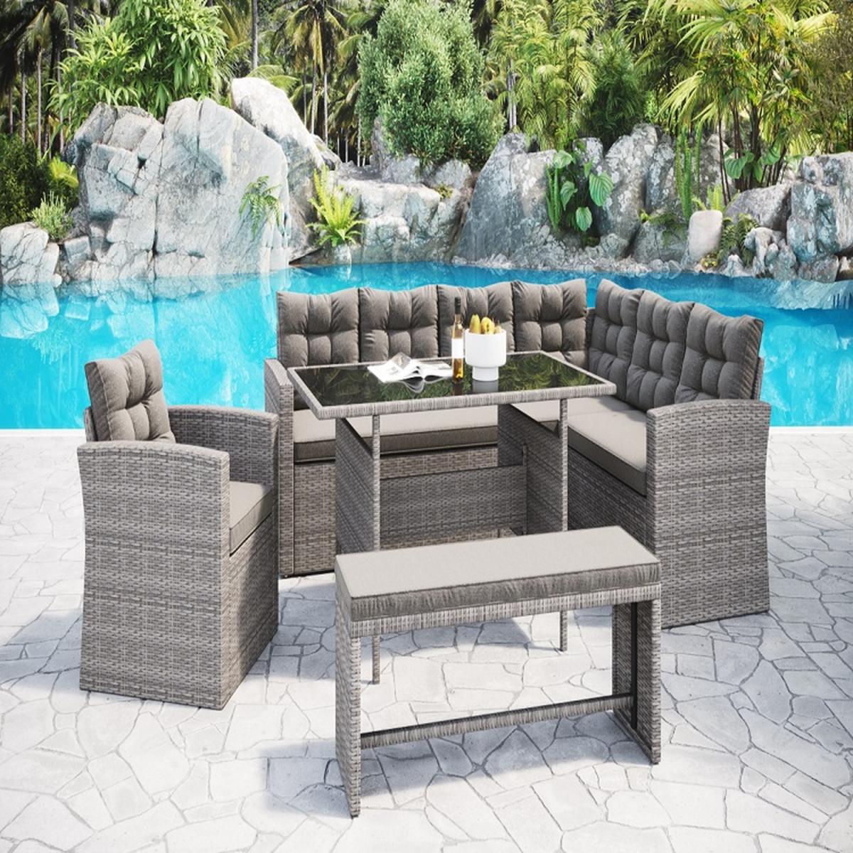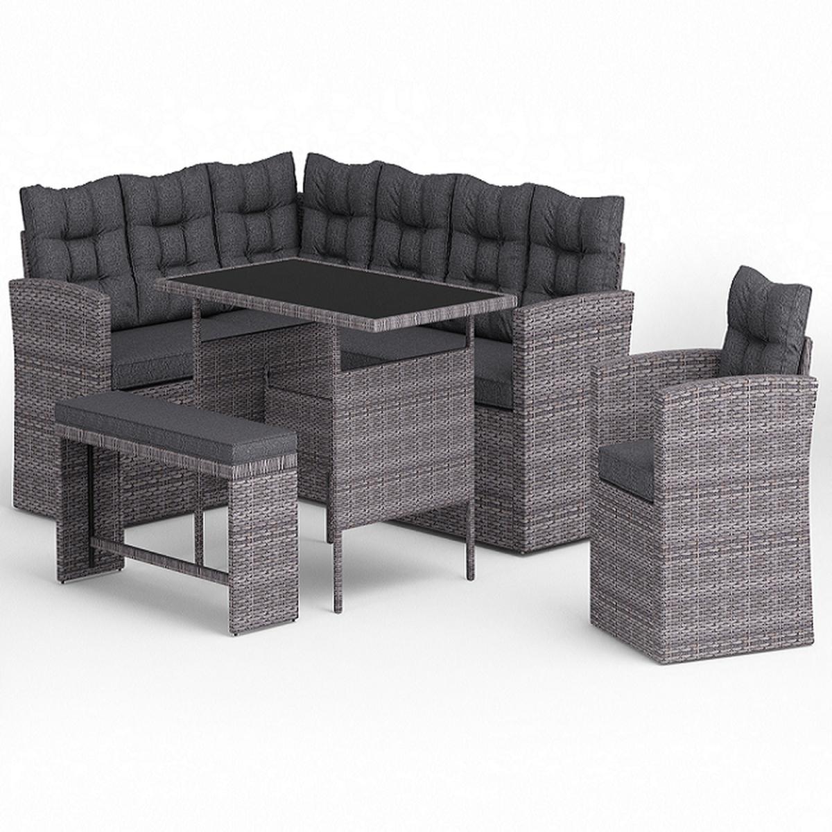 Introducing Girona rattan dining set. More and more of us are spending our summer holidays in the garden, maximising our personal space and saving money on pricey international travel! Any modern home can benefit from our collection of patio furniture, which features a chic wicker style made of PE rattan. Escape to your private refuge in your garden or patio to extend the length of the summer. Enjoy the bright weather while sitting with up to 9 family members and friends. This set does not come with a cover - we recommend you purchase a waterproof cover to preserve your garden set when not in use. This garden set is durable and for outdoor use all year round in mild to warm weather. Although the cushions are weather-proof, we do not advise leaving them out in adverse weather conditions for long periods of time. We recommend the whole set be moved indoors over the winter. While the cushions have zips, we advise against removing the covers because they are challenging to put back on. If necessary, apply upholstery shampoo and store cushions indoors while not in use. Each seating part is an individual module, the set is made up by putting the modules together. They DO NOT clip together but instead, sit next to each other to make the corner unit.
