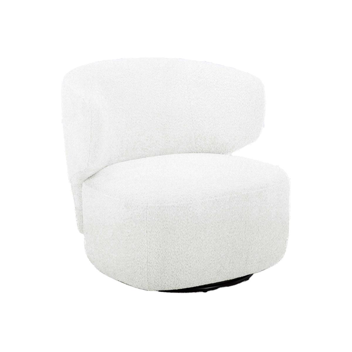 The Ivory Wool Blend Swivel Chair is a masterful fusion of style and comfort for your living room. With its neutral hue and meticulously designed dimensions, this armchair adds a touch of sophistication to your space. Crafted from a high-quality fabric blend, it features a fixed foam seat cushion with Dacron for consistent and enduring comfort. The elastic webbing back suspension ensures lasting support, distributing weight evenly. Improve your living room with this smart and chic addition that seamlessly combines aesthetics with enduring quality