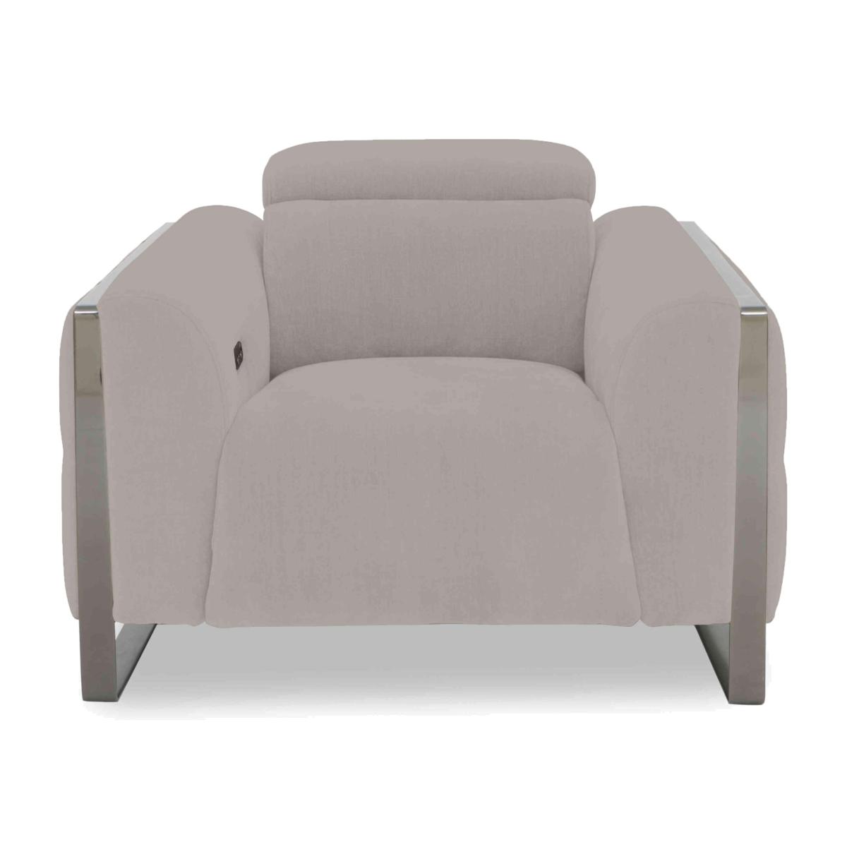 Striking modern design meets fantastic recliner comfort in our Gisella range. Sleek in style with wrap-around metal legs, bold geometric feature stitching, perfectly cushioned arms and a cool off-the floor look, Gisella sofas and armchairs have the smoothest of power recliners – you can even move the seat back and footrest independently – and perfect-position headrests for the fine-tuned comfort that you deserve. And with built-in USB charging points, you can lounge on those pocket sprung seat cushions for even longer. Handmade exclusively for Furniture Village, the Gisella collection also includes footstools and storage footstools and is available upholstered in your choice of leather or fabric. This stunning fabric-upholstered armchair brings home cool modern style. It’s also available with a power recliner and a power headrest for extra comfort. Why you’ll love it Designer style meets customised comfort. With optional power recliner, perfect-position power headrest and USB charging. Power recliner has independently adjustable back recline and footrest. Ultra-comfy seat cushion with pocket spring interior. Packed with cool modern details like wrap-over metal legs and geometric stitching. Soft-touch fabric upholstery in a choice of colours. Also available in 100% leather. Handcrafted and exclusive to Furniture Village. This fabric armchair is part of our Gisella range. What you need to know Medium comfort level. Seat suspension: no-sag spring. Seat cushioning: encapsulated pocket spring with a foam top. Cushion is fixed. Back suspension: webbing. Back cushioning: fibre. Cushion is fixed. Arm cushioning: foam and Dacron. The non-recliner version of this armchair does not have a power headrest and USB charging. Please allow time for new recliners to ease. Minor gaps are necessary to ensure ease of recliner motion and may be exaggerated depending on floor type. Clean regularly using a soft brush or vacuum with the curtain attachment. Deal with any spills promptly. Professional cleaning advised for oil- and grease-based stains. Please read our upholstery care guide for more advice.