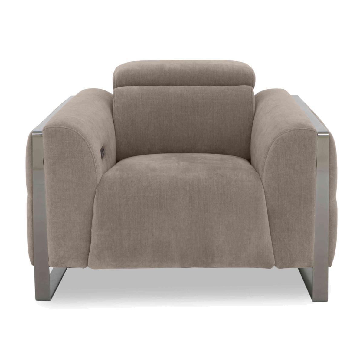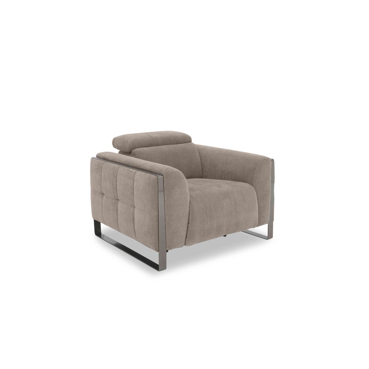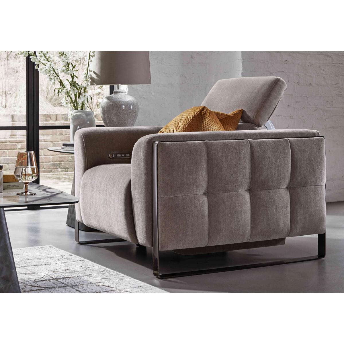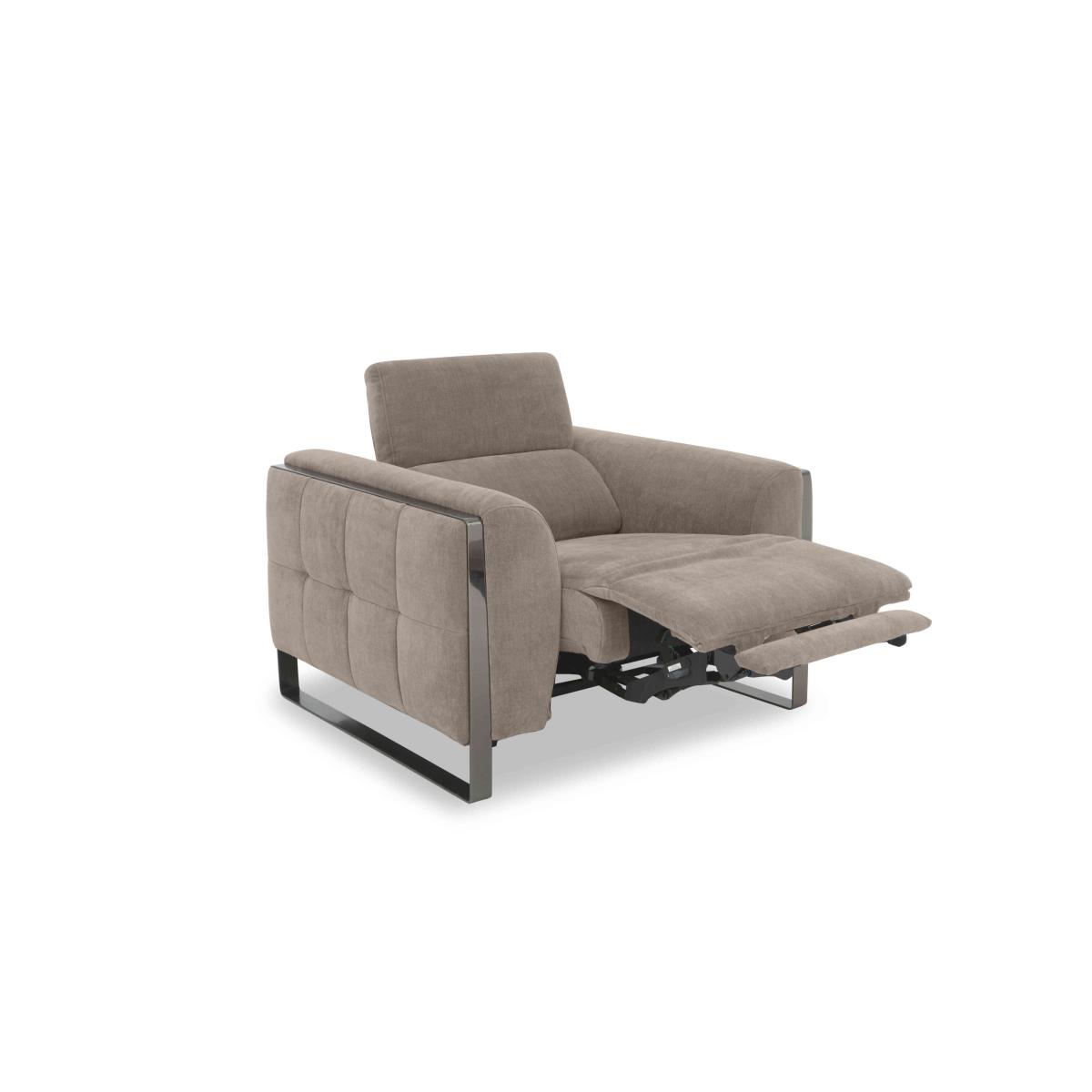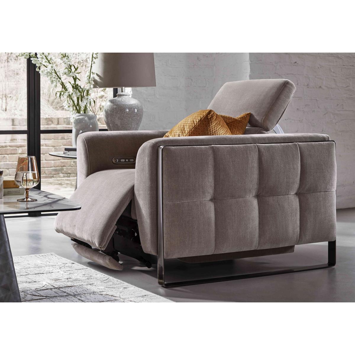 Striking modern design meets fantastic recliner comfort in our Gisella range. Sleek in style with wrap-around metal legs, bold geometric feature stitching, perfectly cushioned arms and a cool off-the floor look, Gisella sofas and armchairs have the smoothest of power recliners – you can even move the seat back and footrest independently – and perfect-position headrests for the fine-tuned comfort that you deserve. And with built-in USB charging points, you can lounge on those pocket sprung seat cushions for even longer. Handmade exclusively for Furniture Village, the Gisella collection also includes footstools and storage footstools and is available upholstered in your choice of leather or fabric. Stock code:It’s also available with a power recliner and a power headrest for extra comfort. Why you’ll love it Designer style meets customised comfort. With optional power recliner, perfect-position power headrest and USB charging. Power recliner has independently adjustable back recline and footrest. Ultra-comfy seat cushion with pocket spring interior. Packed with cool modern details like wrap-over metal legs and geometric stitching. Soft-touch fabric upholstery. Handcrafted and exclusive to Furniture Village. This fabric armchair is part of our Gisella range. What you need to know Medium comfort level. Seat suspension: no-sag spring. Seat cushioning: encapsulated pocket spring with a foam top. Cushion is fixed. Back suspension: webbing. Back cushioning: fibre. Cushion is fixed. Arm cushioning: foam and Dacron. Please allow time for new recliners to ease. Minor gaps are necessary to ensure ease of recliner motion and may be exaggerated depending on floor type. Clean regularly using a soft brush or vacuum with the curtain attachment. Deal with any spills promptly. Professional cleaning advised for oil- and grease-based stains. Please read our upholstery care guide for more advice.