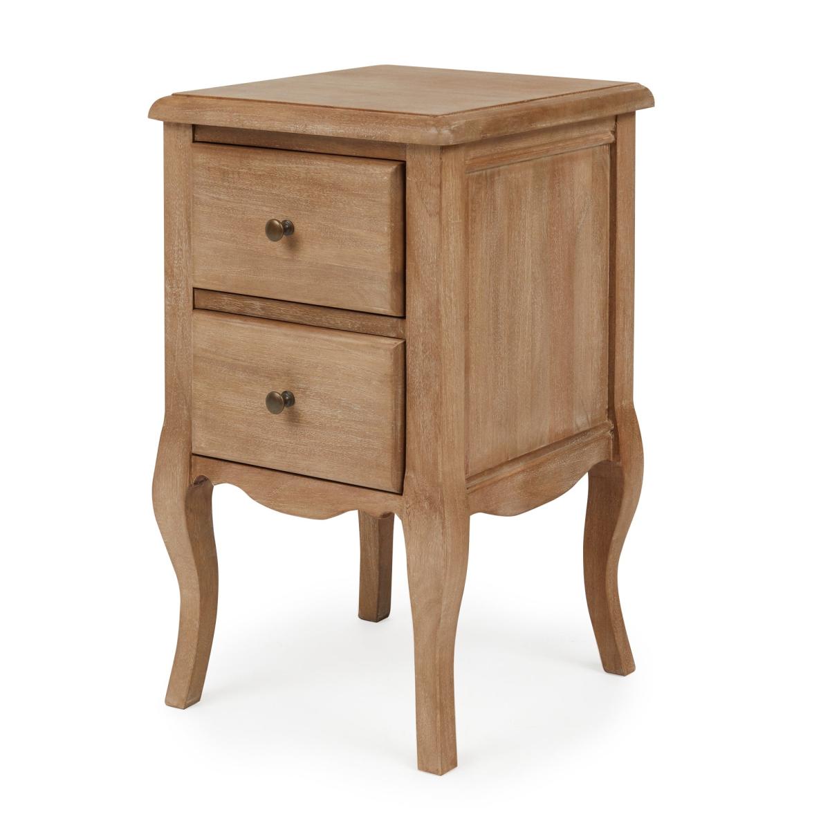 **Dunelm Exclusive - Designed and Developed by Dunelm**Inspired by french styling, our Giselle collection is crafted from 100% solid mango wood, paired with antique style metal handles and a washed finish to bring out the natural beauty of the wood. Complete with hand carved detailing and stunning curved legs, this range boasts a delicate, timeless design that would blend perfectly with traditional home decor styles. Featuring two convenient drawers with wooden runners, the Giselle bedside table features a slender, compact design perfect for any space. Please ensure product is fixed to the wall using the supplied anti-tip kit.