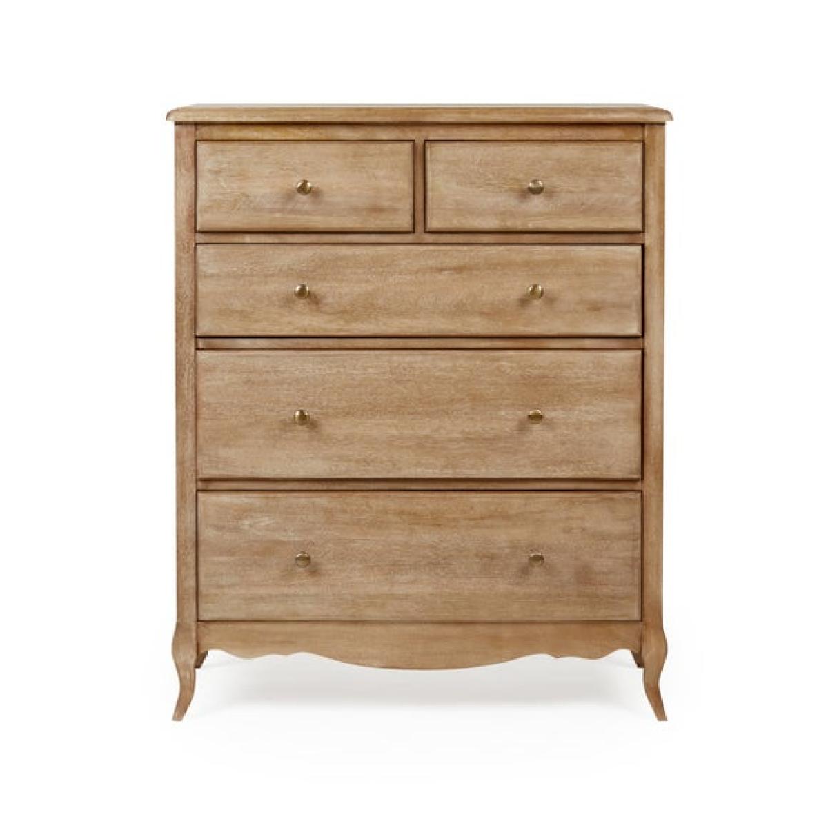 **Dunelm Exclusive - Designed and Developed by Dunelm**Inspired by french styling, our Giselle collection is crafted from 100% solid mango wood, paired with antique style metal handles and a washed finish to bring out the natural beauty of the wood. Complete with hand carved detailing and stunning curved legs, this range boasts a delicate, timeless design that would blend perfectly with traditional home decor styles. Both stylish and practical, the Giselle 5 Drawer Chest is made to last, and offers plenty of storage space for your clothes, featuring two large drawers, one medium drawer and two smaller drawers, each with sturdy wooden runners. Please ensure product is fixed to the wall using the supplied anti-tip kit.