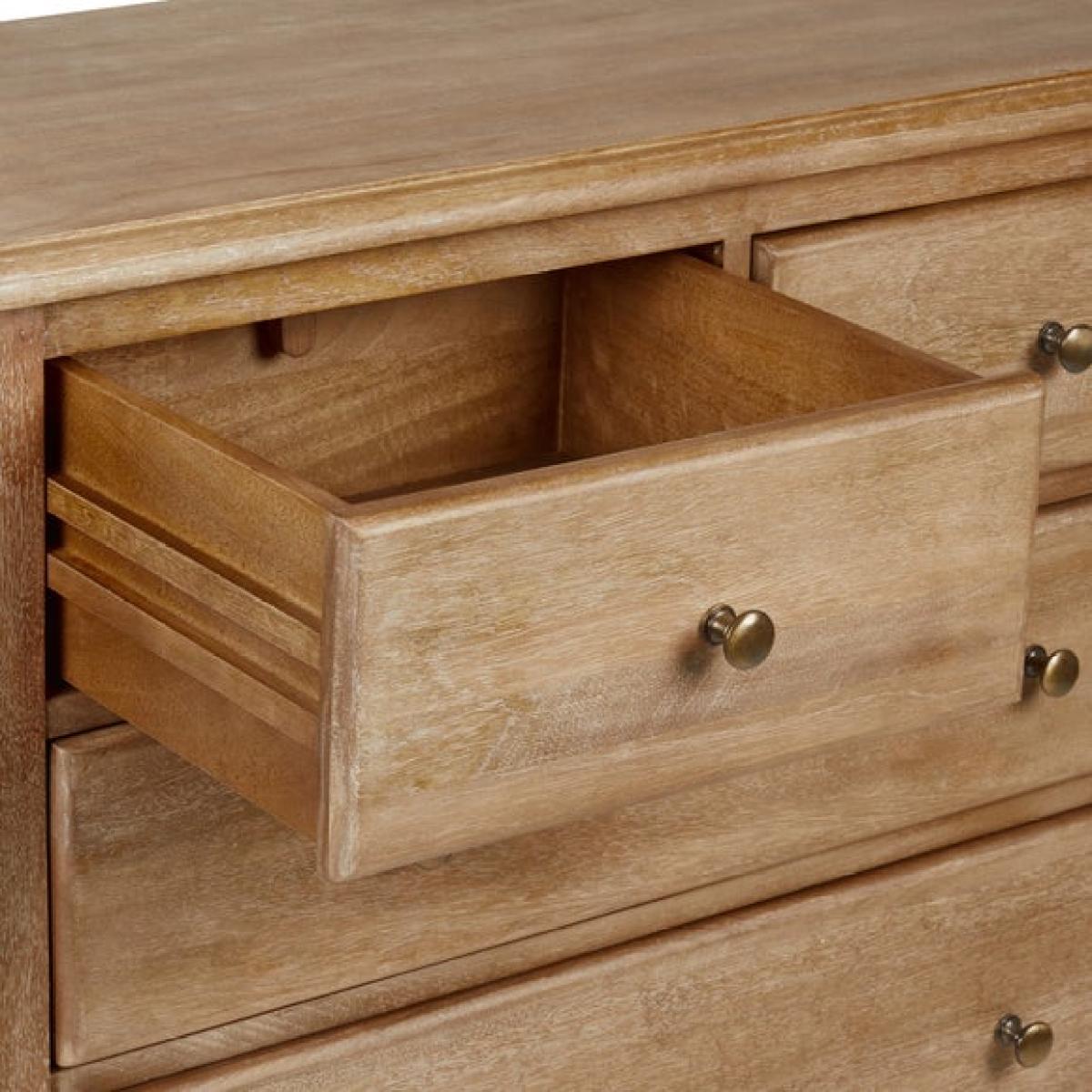 I really like this chest of drawers because its natural mango wood finish adds warmth and character to both traditional and modern interiors. It works especially well in Scandi-inspired or coastal schemes where light, airy tones are key, but it can also bring a touch of rustic charm to more eclectic spaces. Practical styling tips include keeping the top surface clear for a lamp or decorative objects, while using the drawers to organise daily essentials. Pair it with soft textiles and greenery to create a cosy and inviting focal point. Its versatile design makes it a great storage piece that can seamlessly fit into bedrooms, living rooms, or even hallways.