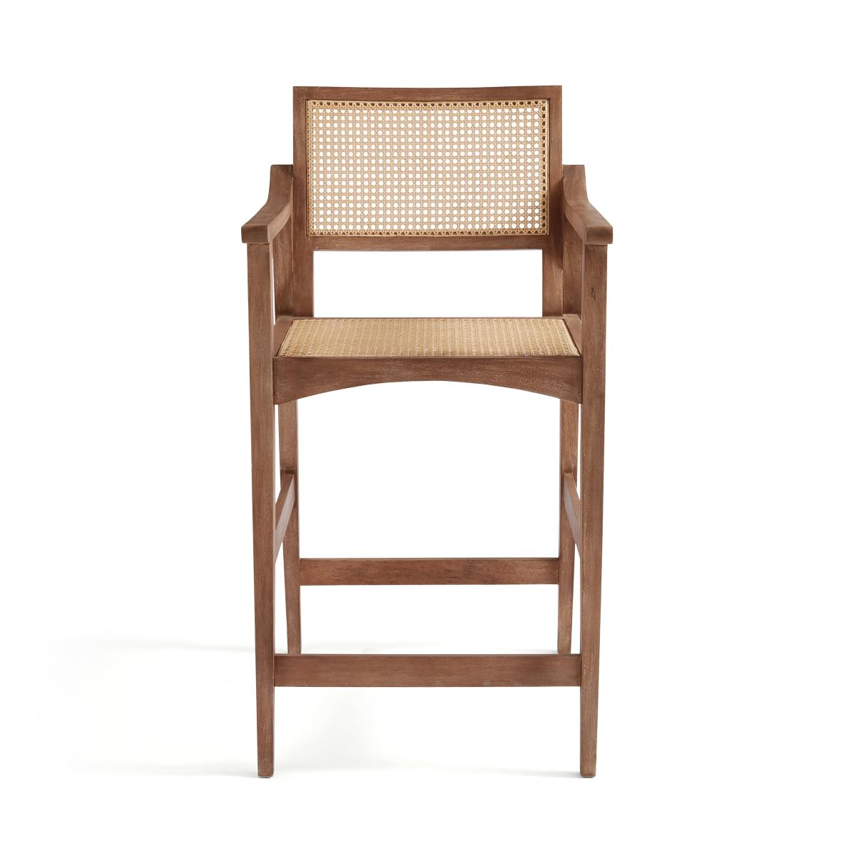 Crafted from exquisite mango wood and featuring a distinctive cane detail on the back, this bar stool exudes natural beauty. Available in both natural wood and dark stain finishes, it effortlessly complements various decor styles. The Carver-style construction provides not only timeless appeal but also comfortable seating, allowing you to enjoy leisurely meals or conversations at your bar or kitchen island.