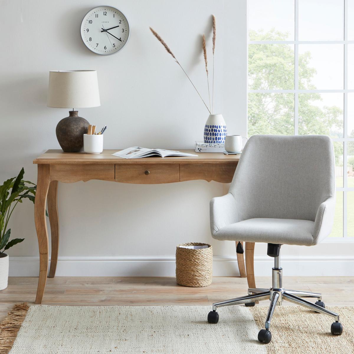 Dunelm Exclusive - Designed and Developed by Dunelm. Inspired by french styling, our Giselle collection is crafted from 100% solid mango wood, paired with antique style metal handles and a washed finish to bring out the natural beauty of the wood. Complete with hand carved detailing and stunning curved legs, this range boasts a delicate, timeless design that would blend perfectly with traditional home decor styles. Adaptable for a range of uses, the versatile Giselle dressing desk would make a great addition to any bedroom, living room or home office space. This desk features a single spacious drawer with wooden runners and a large work surface and is built to last thanks to the solid wood construction. Please ensure product is fixed to the wall using the supplied anti-tip kit.
