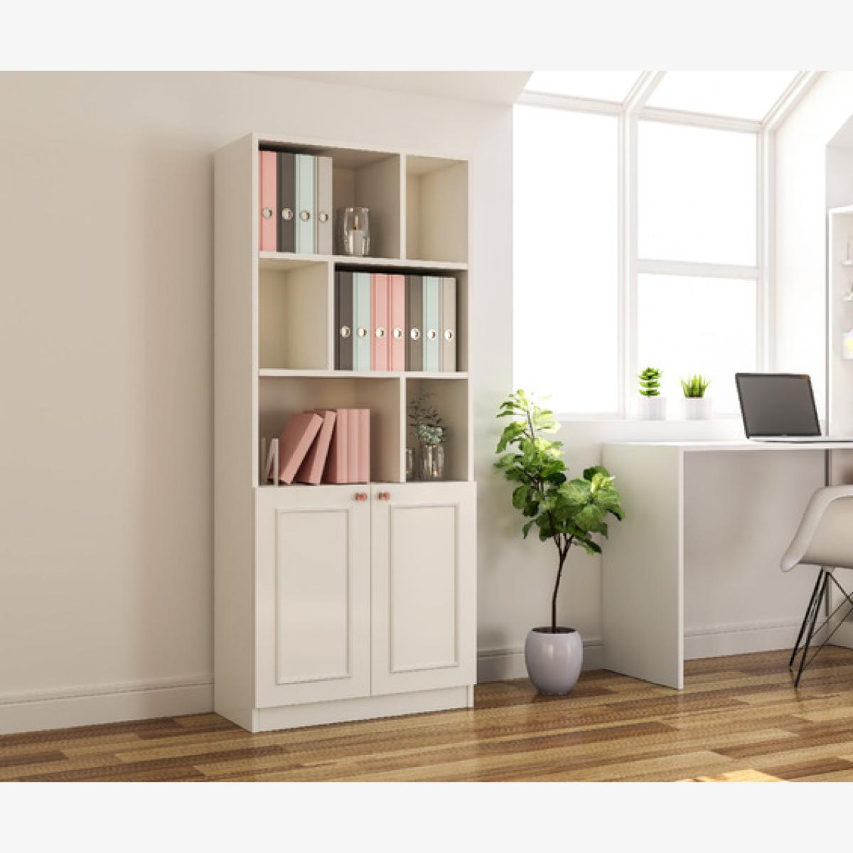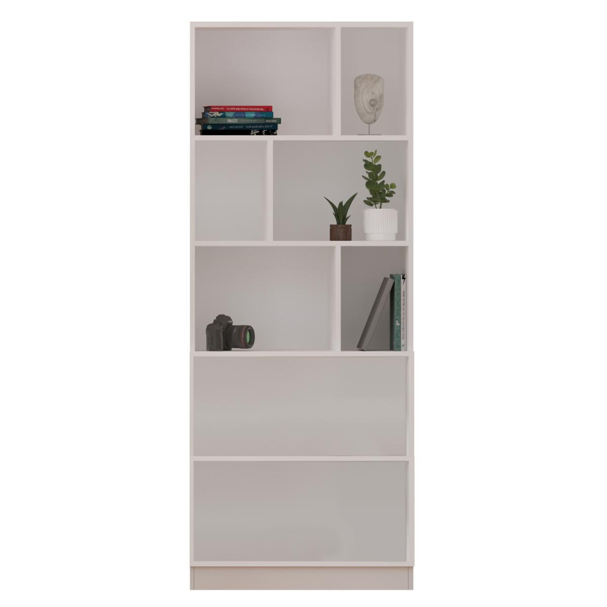 I love this bookshelf for its clean, versatile look and practical storage. Its white finish makes it ideal for both modern and traditional interiors, especially those with a neutral palette or light colour scheme. It works well in living rooms, offices, or even bedrooms, providing ample space to display books, plants, or decorative accessories. To style it effectively, consider grouping objects in odd numbers for visual interest and layering items of different heights for depth. The closed lower cabinets are perfect for stashing away clutter, keeping the overall look tidy. Overall, this piece combines functionality with understated elegance, making it a flexible addition to a variety of interior styles.