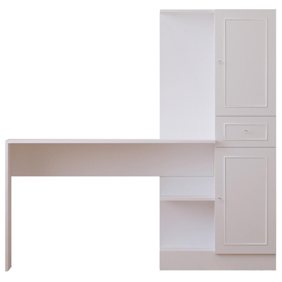 Simple but effective, GISELLE range is a modern take on the classic French furniture. Soft carved lines and white finish with matching accessories. Combining 2 door 1 drawer bookcase and shelving with a large desk, finished in white with antique style handles, this unit is a complete solution for your home office.