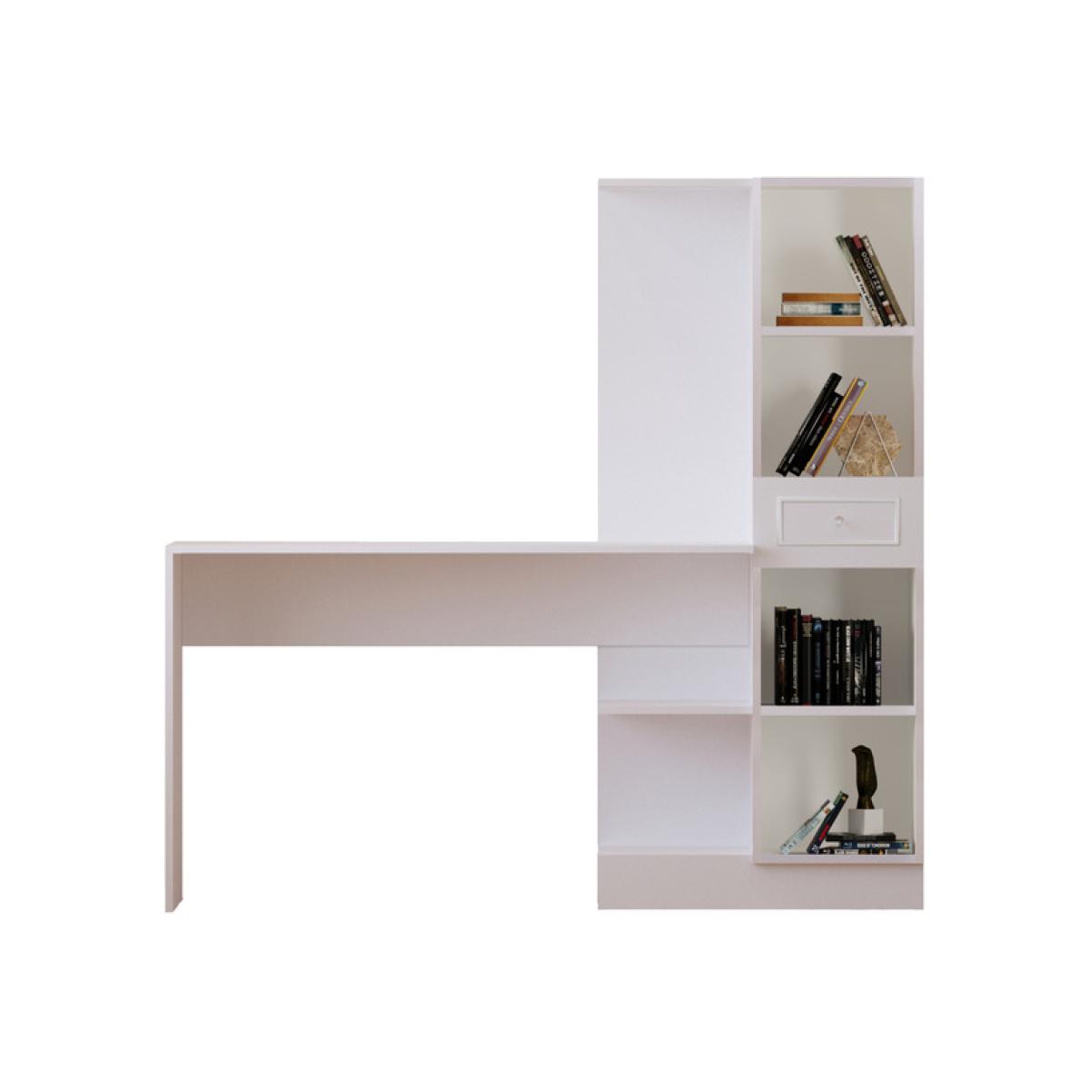 I love this white storage desk for its clean, contemporary look and practical design. It works well in modern, minimalist interiors or within a bright, Scandinavian-inspired space. The built-in shelves provide excellent organisation options, making it ideal for a home office or study corner where clutter control is key. Styling tips include keeping the surface clear with a simple desk lamp and a few stationery essentials, while decorating the shelves with a mix of books and decorative objects in neutral or pastel tones to keep it fresh and light. This piece seamlessly balances functionality with sleek aesthetics, making it a versatile addition to various interiors.
