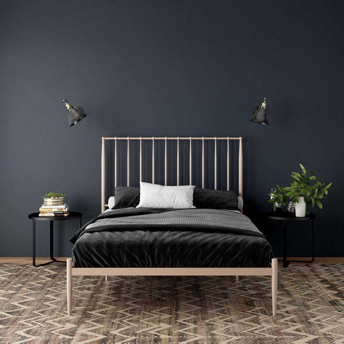 I’m a big fan of this millennial-pink metal bed for its simple, slatted design and soft, contemporary colour - it’s a versatile piece that works just as well in a pared-back Scandi scheme as it does in a more eclectic, maximalist bedroom. The slim metal frame keeps the look light and airy, so it’s ideal for smaller rooms or shared spaces. For styling, I’d layer muted grey or cream linens to balance the pink tone, then add a mix of textured cushions and a chunky throw for extra depth. Position dark-wood or black-metal bedside tables to pull in contrast, and finish with a statement pendant or wall sconces to keep your surfaces clutter-free and emphasise the bed as the focal point.
