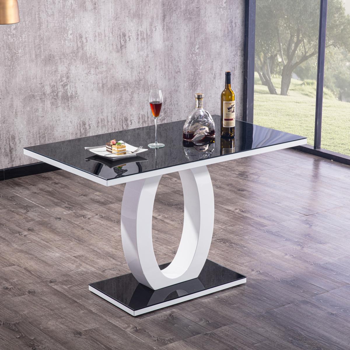 Stylish modern combination of white Gloss and Black or Grey Glass, offer stability and sleek design that enhance any dining room. Durable and sturdy construction resulting in a long product life. Stunning design, built to bring a stylish look into your home kitchen dining areas. Dining Table: 120 x 70 x H 76 cm Practical size for small to Medium Dining areas Create enough place for 4 adults seat comfortably.