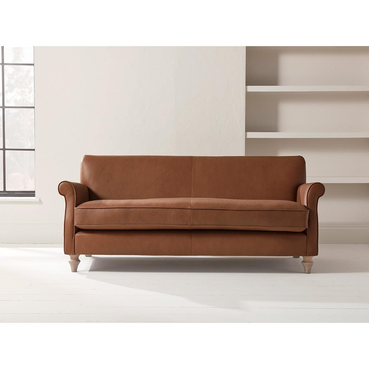 Our Giverny collection boasts a distinguished profile that is pared back for a more graceful welcome to your living space. Narrow flared P-shaped arms, a medium height back and characterful turned wooden feet define the robust charm of this collection, which is destined to support your home styling both now and as it evolves. The sofa is available in two and three seater versions. Pictured here in our Vintage Tan leather, our Giverny collection can be upholstered in a choice of 34 distinctive shades and six fabrics to suit your style. Read our Upholstery FAQs View our full Upholstery Terms and Conditions