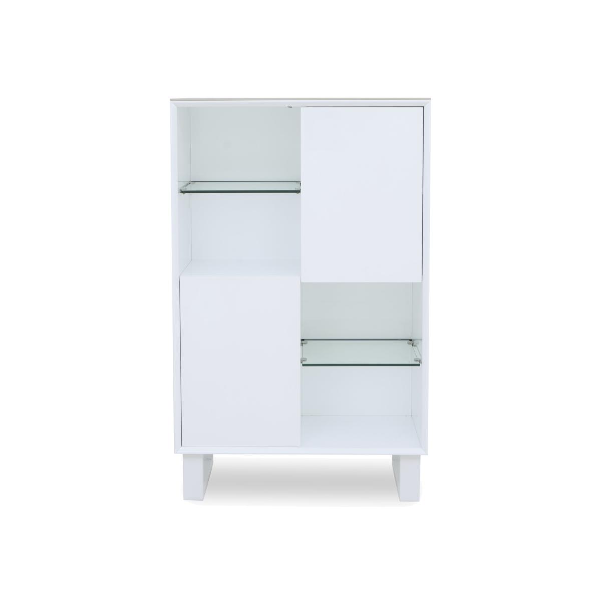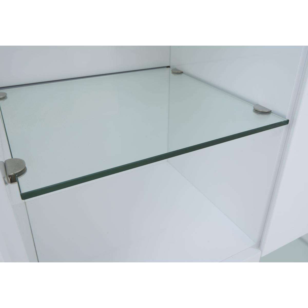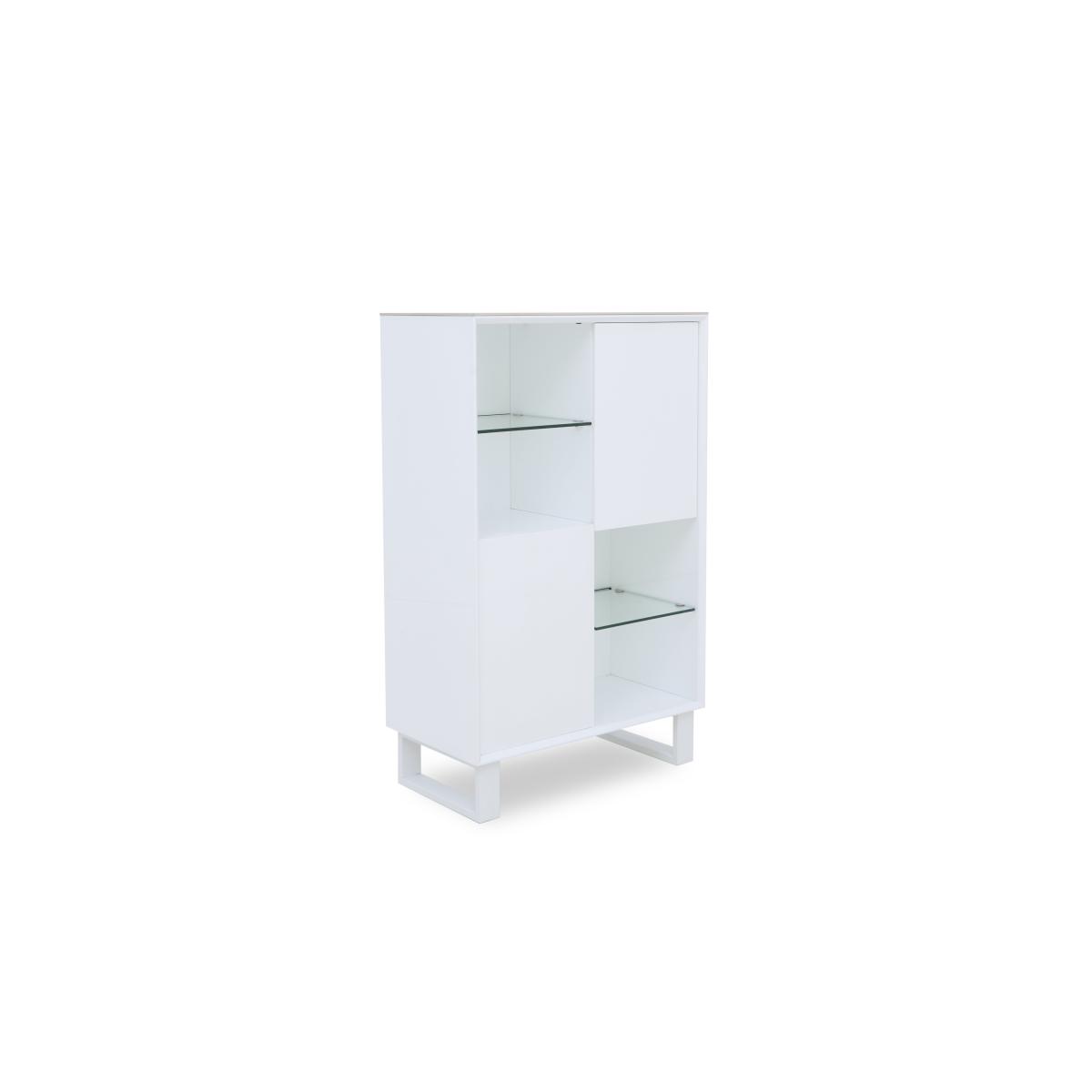 Ice-white and the essence of cool modern style, our Glacier collection of dining room furniture and living room tables and storage pieces is furniture for today – and the future. The finish is beautiful: a matt white ceramic with marble-effect patterning that’s highly durable and perfect for both busy homes and elegant spaces. Extending dining tables and occasional tables have white powder-coated metal bases while the range’s TV unit, sideboard, highboard and curio cabinets showcase sleek, high-gloss lacquered finishes with built-in LED lighting. The fabulous Glacier collection is exclusively available at Furniture Village. This well-proportioned highboard delivers ample cupboard and shelf storage – illuminated by LED lighting – as well as a modern white high-gloss and ceramic finish. Only at Furniture Village. Why you'll love it Our Glacier range is cool, calm and very collectible. Stunning modern highboard with built-in LED lighting. Matt ceramic top with marble-effect patterning. High-gloss ice-white lacquer finish. Stylish arrangement of cupboard storage and open shelving. Soft-closing cupboard doors. White powder-coated metal U-shaped legs. The Glacier range is only available at Furniture Village. This highboard is part of our Glacier range. What you need to know 2 alcoves each with 1 fixed glass shelf. 2 cupboards each with 1 adjustable shelf. Lacquered surfaces may show small circular marks as a result of the polishing process. We recommend using coasters and placemats at all times. Easy to care for. Simply wipe with a clean damp cloth and dry with a soft duster. Do not use abrasive cleaning products.