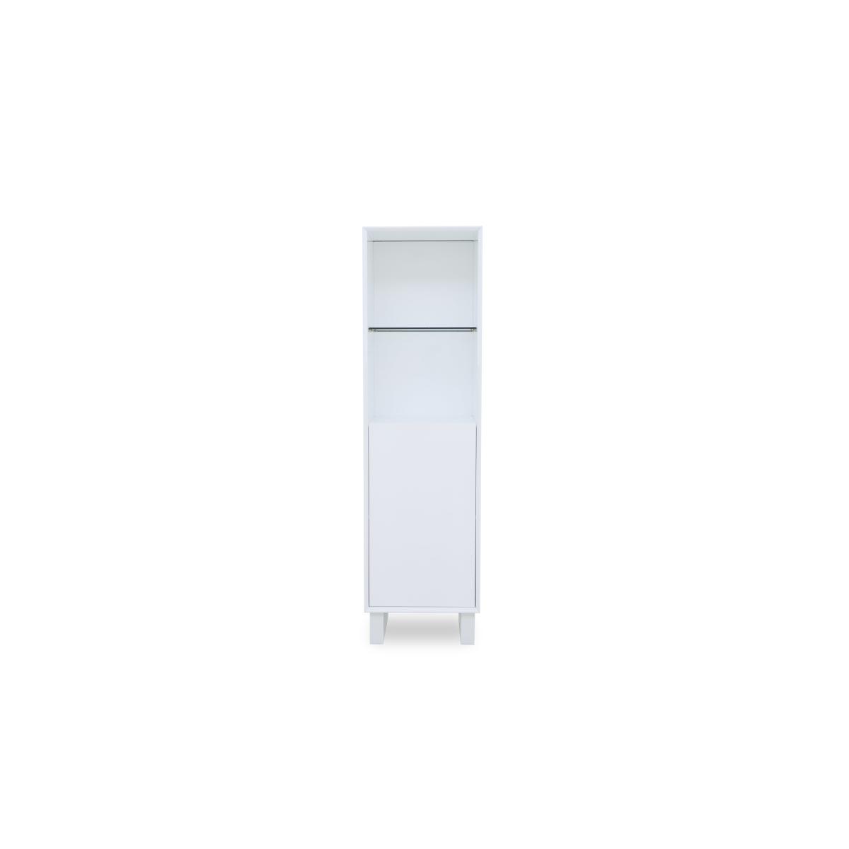 Ice-white and the essence of cool modern style, our Glacier collection of dining room furniture and living room tables and storage pieces is furniture for today – and the future. The finish is beautiful: a matt white ceramic with marble-effect patterning that’s highly durable and perfect for both busy homes and elegant spaces. Extending dining tables and occasional tables have white powder-coated metal bases while the range’s TV unit, sideboard, highboard and curio cabinets showcase sleek, high-gloss lacquered finishes with built-in LED lighting. The fabulous Glacier collection is exclusively available at Furniture Village. Display your favourite things in beautiful modern style with this single-door curio cabinet. It has a marble-effect white ceramic top, glossy white frame and even LED lighting. Why you'll love it Our Glacier range is cool, calm and very collectible. Stunning modern curio cabinet with built-in LED lighting. Matt ceramic top with marble-effect patterning. High-gloss ice-white lacquer finish. Stylish arrangement of cupboard storage and open shelving. Soft-closing cupboard door. White powder-coated metal U-shaped legs. Hinged on the right-hand side and opens on the left-hand side. Pair it with the matching right-hand curio cabinet. The Glacier range is only available at Furniture Village. This curio cabinet is part of our Glacier range. What you need to know Alcove has 1 fixed glass shelf. Cupboard has 1 fixed shelf Lacquered surfaces may show small circular marks as a result of the polishing process. We recommend using coasters and placemats at all times. Easy to care for. Simply wipe with a clean damp cloth and dry with a soft duster. Do not use abrasive cleaning products.