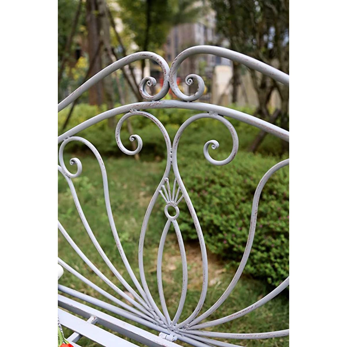 Built to be durable and stylish, this handmade metal garden bench provides the perfect place to sit and enjoy the spring and summer weather. After all, your garden is an extension of your home and you want to feel just as relaxed and comfortable outside as you do inside! Styles come and go, but this vintage design is classic. Made from strong iron, this garden bench provides a shabby-chic finish, whilst also being durable and clean-looking. Placed near flowers, the colours will reflect and peak through the moulded design, making your garden look picturesque and perfect to relax in!