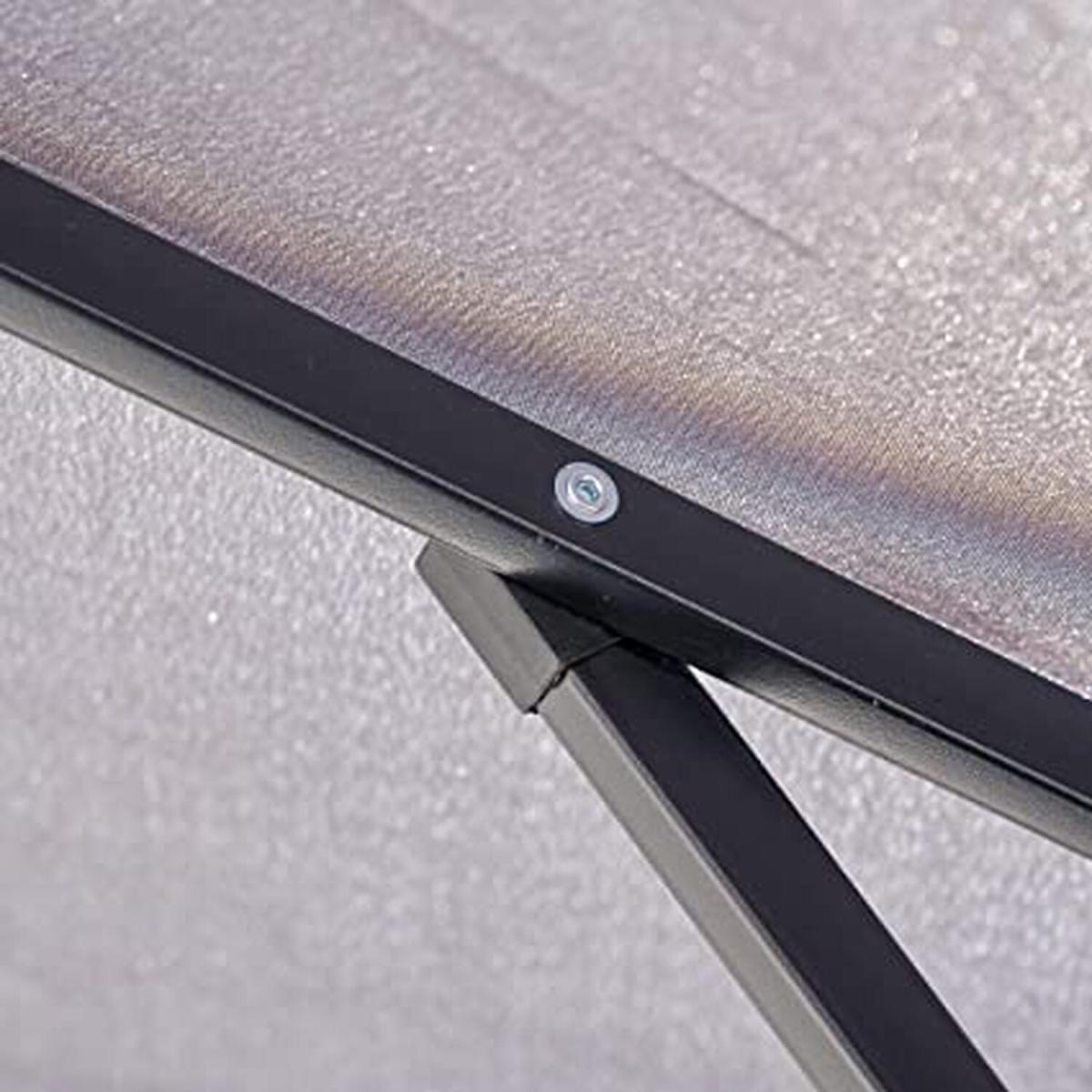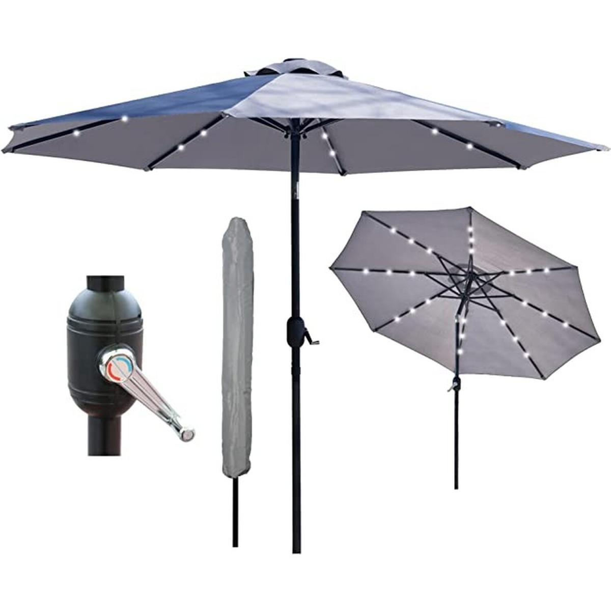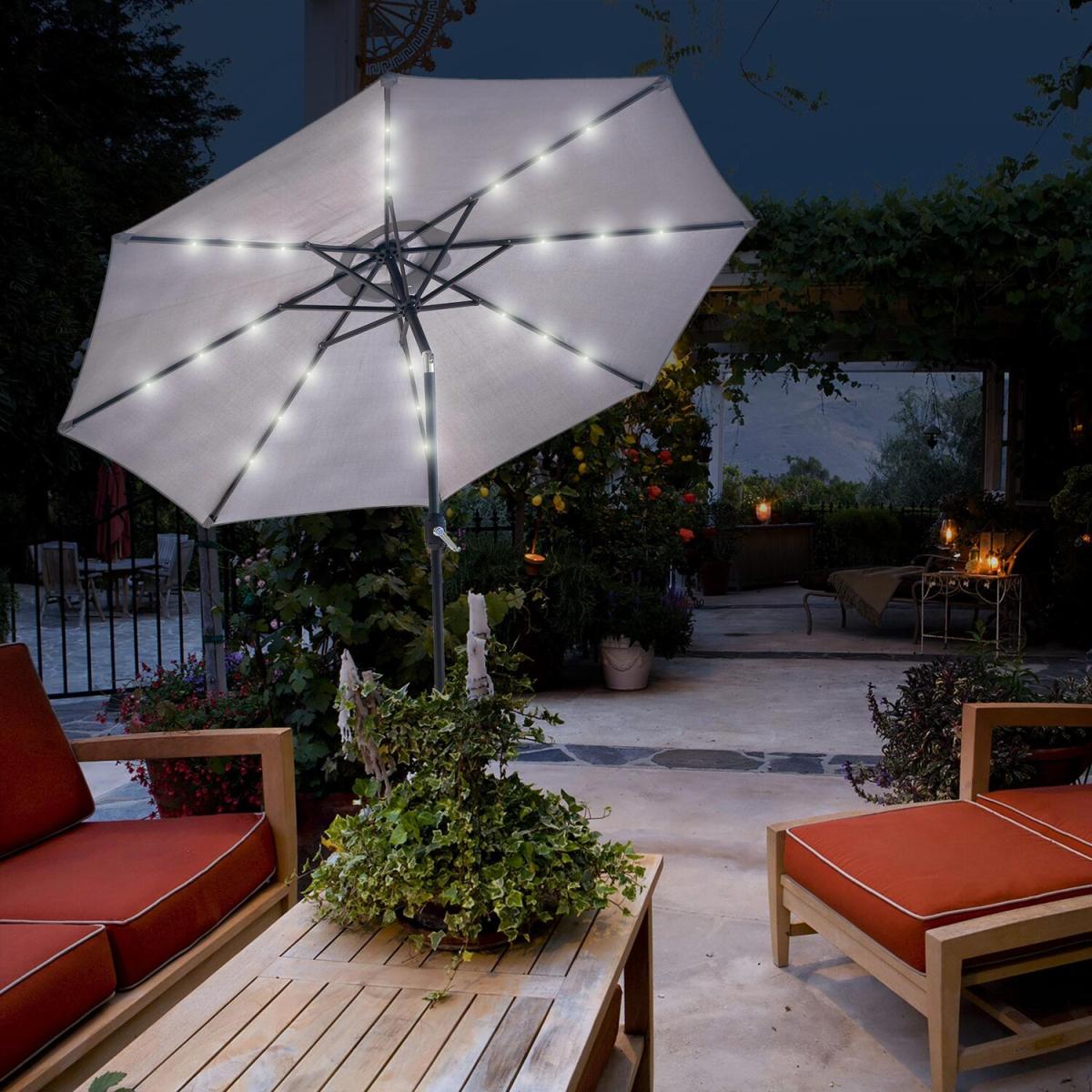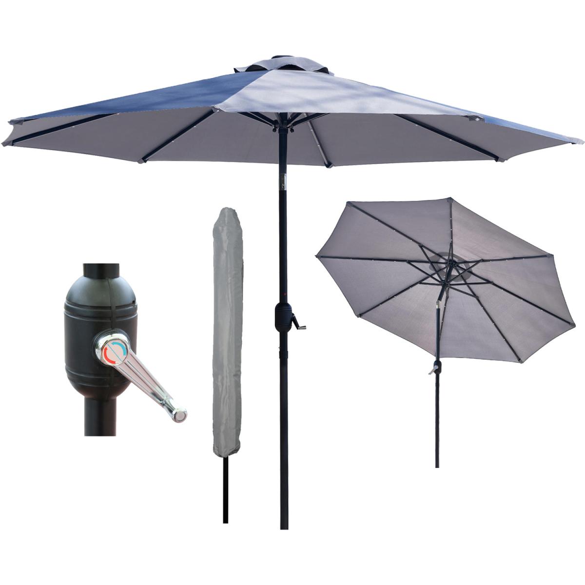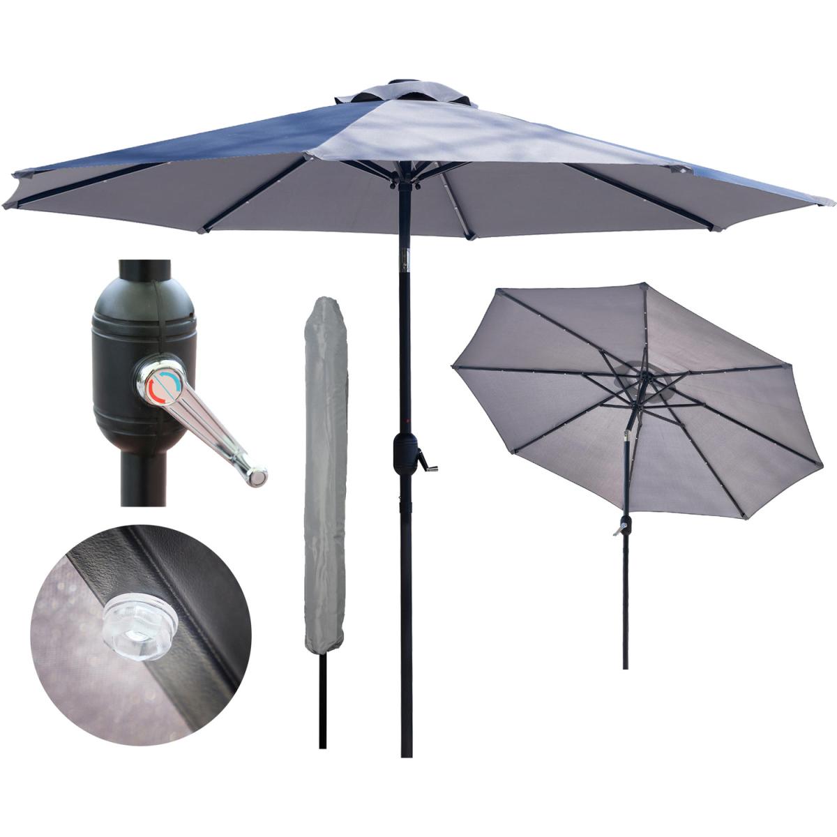 Bring a touch of class to your garden parties and BBQs with this elegant yet practical light grey coloured parasol. The tilting umbrella lets you get as much or as little sun as you want. Unlike a lot of other garden furniture, it's easy to put together and simple to use. Just click the two pieces together, turn the crank handle to open the umbrella, and use the push button to tilt it to the right angle. That's all there is to it! The ribs on this parasol are lined with solar-powered LED lights that you can turn on with a flick of a switch. This will illuminate the area directly beneath the parasol, so you can enjoy a cup of tea or read a book on a warm summer evening.