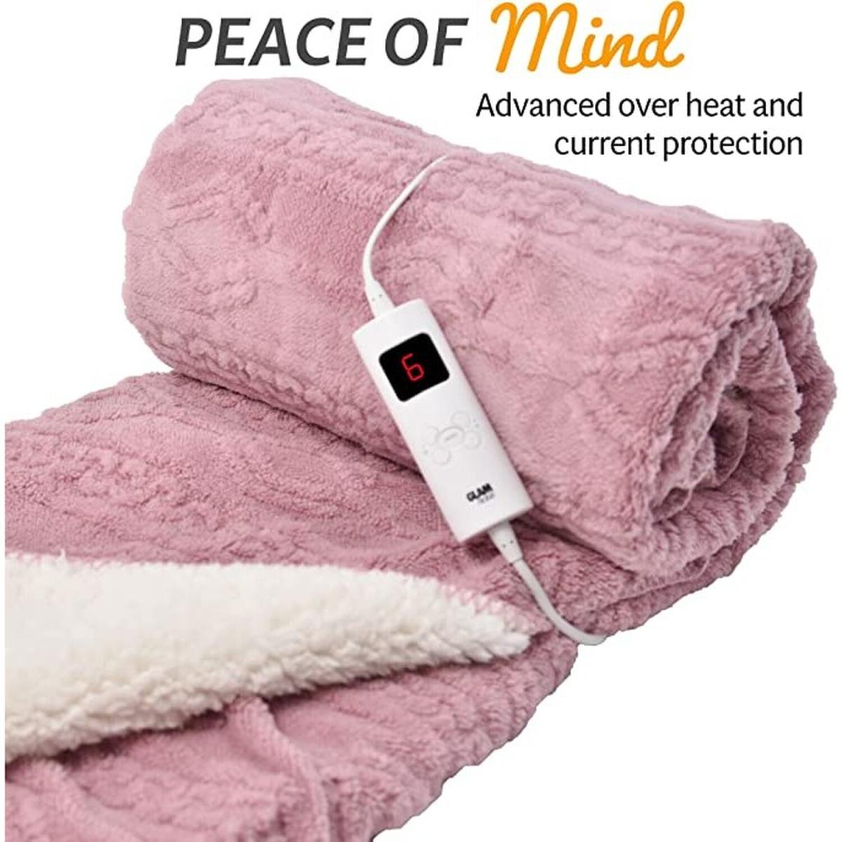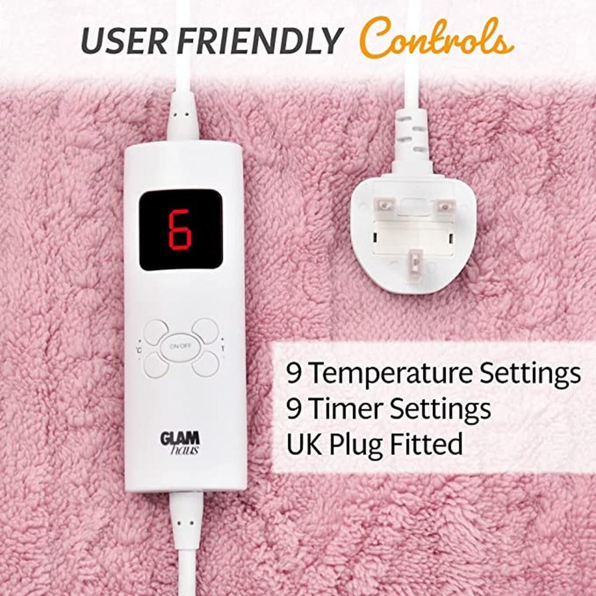 This Glamhaus heated throw is made from the finest materials to present a comfortable luxurious soft smooth touch, materials that include Shu Cotton Velvet 280gsm and Sherpa Fleece 220gsm knitted together with an overlock edging stitch system to offer extra supreme durability. With an impressive size of 160 x 130cm, you can use this throw as a wrap-around, sofa throw or bed throw. At only 85W this low-cost throw will save you energy and money by heating you and not the whole house during the cold evening nights The user-friendly control is designed to be light and sit perfectly in the palm of your hand. The control offers a 9-Hour countdown timer function with will automatically turn the throw-off after your desired time has been reached.