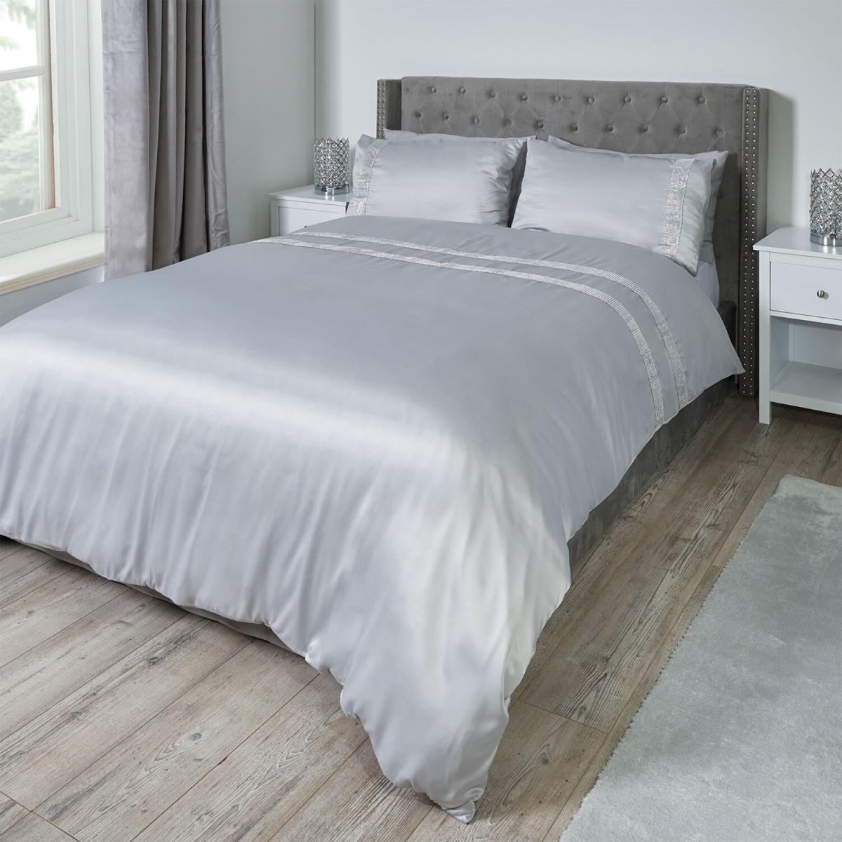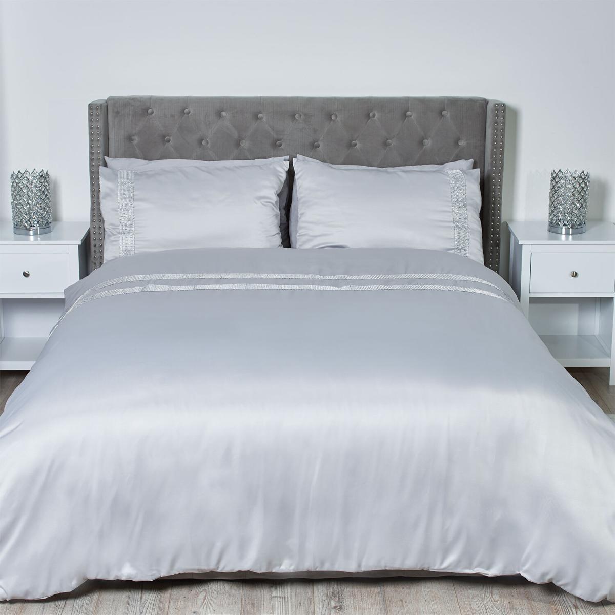 Glamour Diamante Duvet Cover and Pillowcase Set - Silver / King