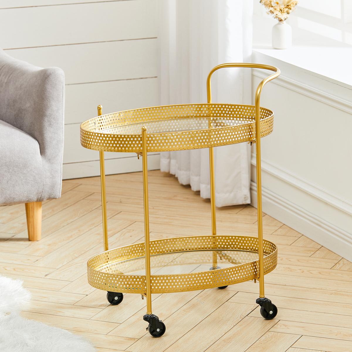 Elegant and modern serving and display trolley, stylish and fashionable design are compatible seamlessly with any room decor and also adds a touch of elegant charm to your room. It is a simple but strong structure, shelves for displaying drinks, wine, glasses or more, in order to keep your room tidy, other layers design could help you compartmentalize the items. This trolley is able to apply in several scenarios. Perfect for living room, bedroom, office. etc, which is the best choice for home furniture. With the simple design of this side table, it is easy to install, all necessary parts are in the package, you can install this table within a few minutes.