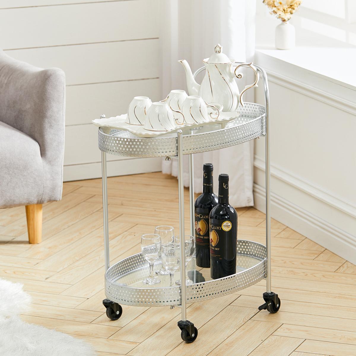Elegant and modern serving and display trolley, stylish and fashionable design are compatible seamlessly with any room decor and also adds a touch of elegant charm to your room. It is a simple but strong structure, shelves for displaying drinks, wine, glasses or more, in order to keep your room tidy, other layers design could help you compartmentalize the items. This trolley is able to apply in several scenarios. Perfect for living room, bedroom, office. etc, which is the best choice for home furniture. With the simple design of this side table, it is easy to install, all necessary parts are in the package, you can install this table within a few minutes.