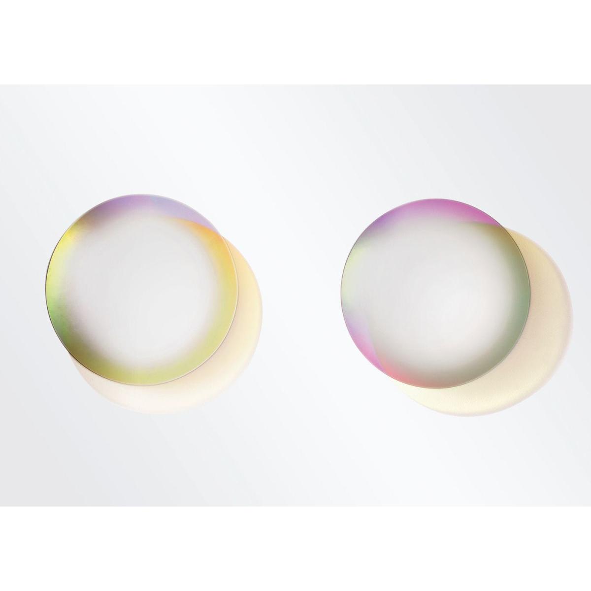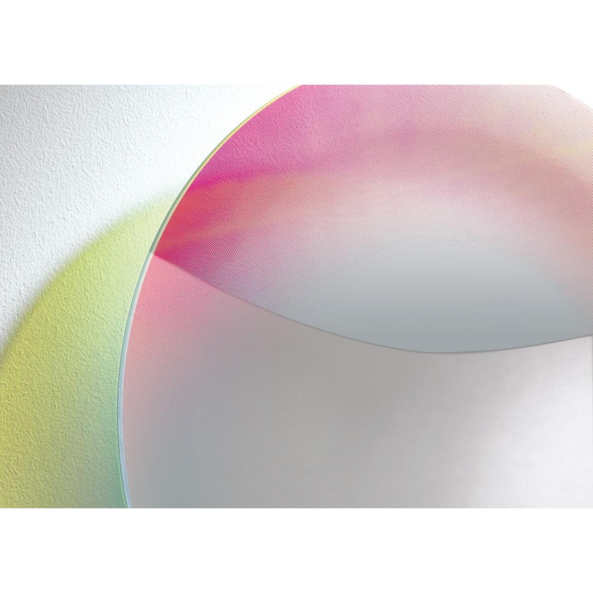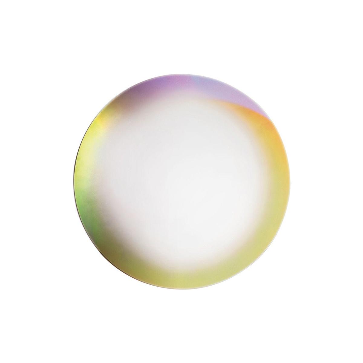 A series of mirrors in extra-light glass. Made with refined processing techniques, an ombre shaded silvering mix and the magnificent iridescent multichromatic finish, a feature of the Shimmer collection. A magical, fascinating and animated mirror, continuously variable according to the angle of the light source and the vantage point.